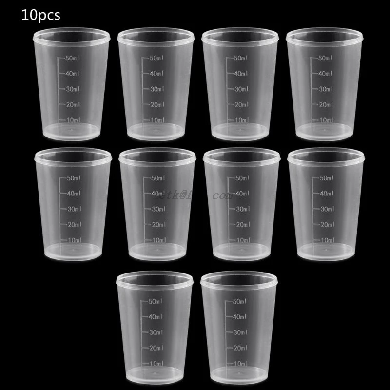 10 шт. 50 мл пластиковая лабораторная бутылка, мерная емкость, чашки с крышкой, Пластиковые мерные стаканчики для жидкости