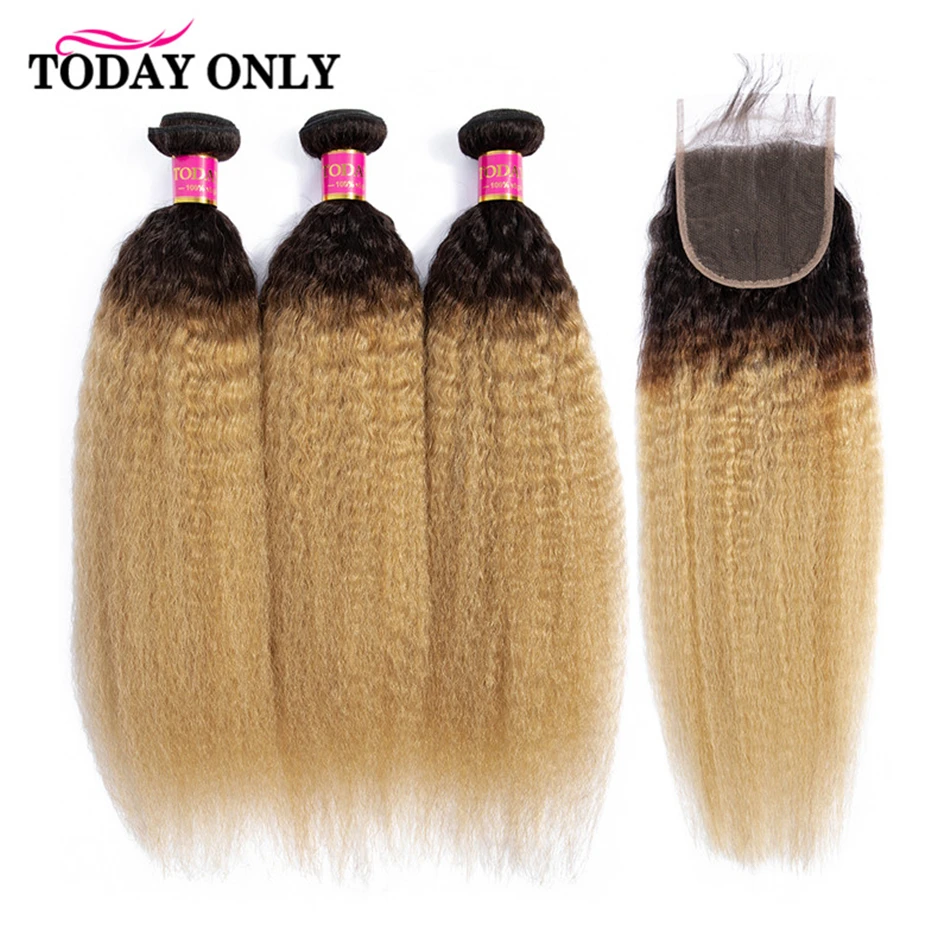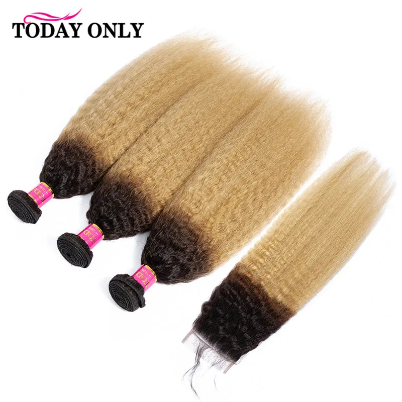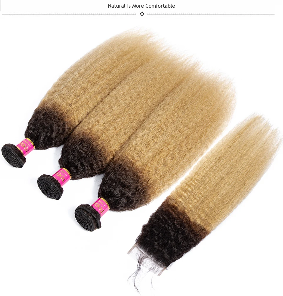 Пучки натуральных прямых волос с застежкой, 1b27, блонд, 3 шт.