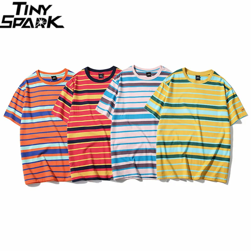 Ретро винтажная полосатая футболка уличная Harajuku футболка мужская 2020 летняя хип-хоп футболка модные повседневные топы футболки с коротким рукавом
