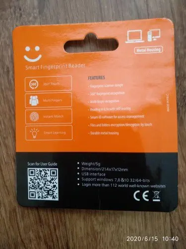 Посылка приехала быстро, упаовка-блистер была целая. В Windows 10 LTSC 1809 и 10 Pro 20H2 сканер определился без установки дополнительных драйверов. В Windows 7 Ultimate не определился, парится с установкой драйверов не стал. Но сканер оказался нерабочим, в Windows Hello при попытке установить отпечаток распознаёт 2 прикосновения и всё, дальше никак. Открыл спор, скинул видео продавцу, но общего языка с ним не нашёл, после привлечения к спору Aliexpress деньги мне вернули. Так что при покупке обязательно распаковывайте и проверяйте сканер на видео. Сначало в переписке продавец просто выслал картинку с тех. характеристиками, после открытия спора начал общаться реально. От брака никто не застрахован.