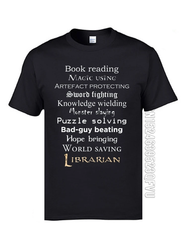 Текстовая надпись Librarian, топы, рубашки, супер скидка, круглый вырез, повседневная, короткий рукав, 100% хлопок, Мужская футболка, группа компаний, футболки
