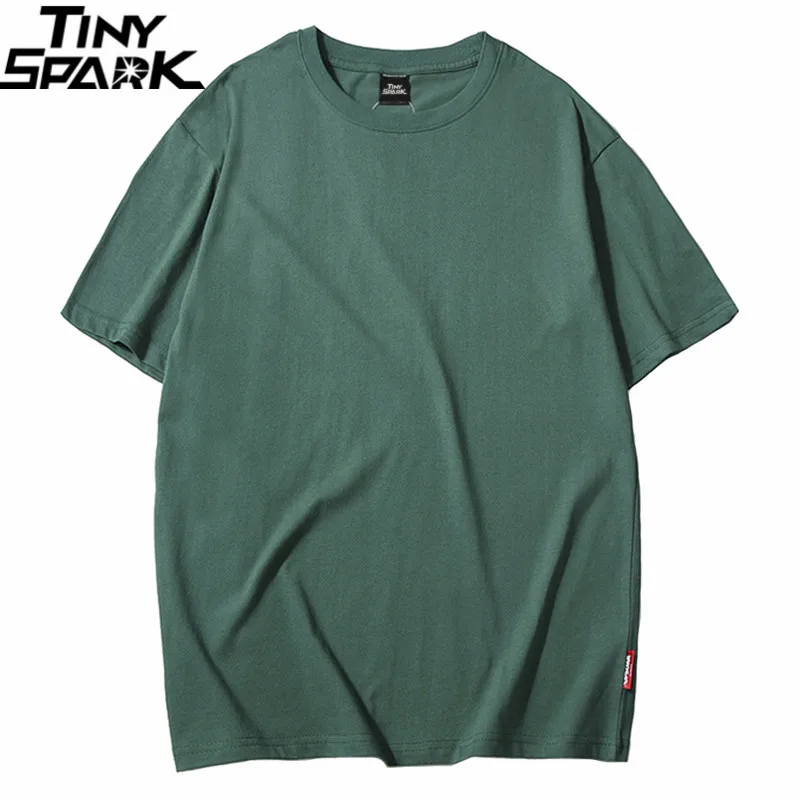 Однотонная футболка Harajuku, летняя футболка в стиле хип-хоп, 2021 хлопок, мужские зеленые футболки, уличная одежда, Повседневные базовые топы, футболки с коротким рукавом, 100