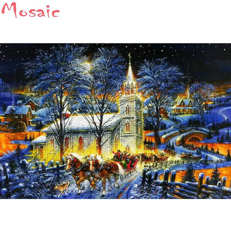 Новый заполненный & круглая или квадратная Алмазная вышивка снежная ночь деревенский дом 3d diy бриллианты окрашенные вышивки крестом Шитье