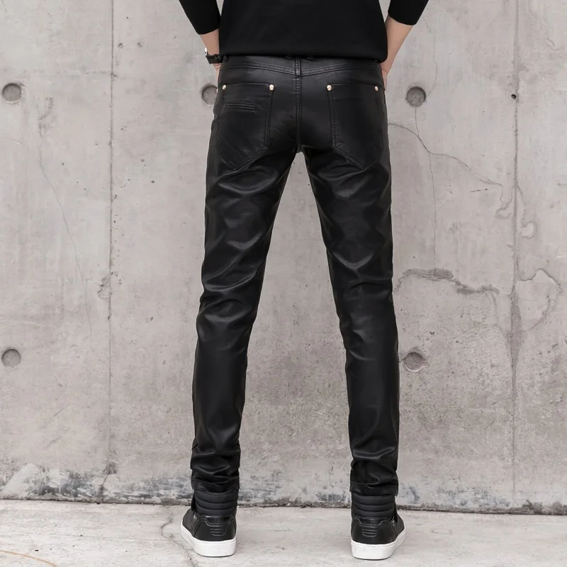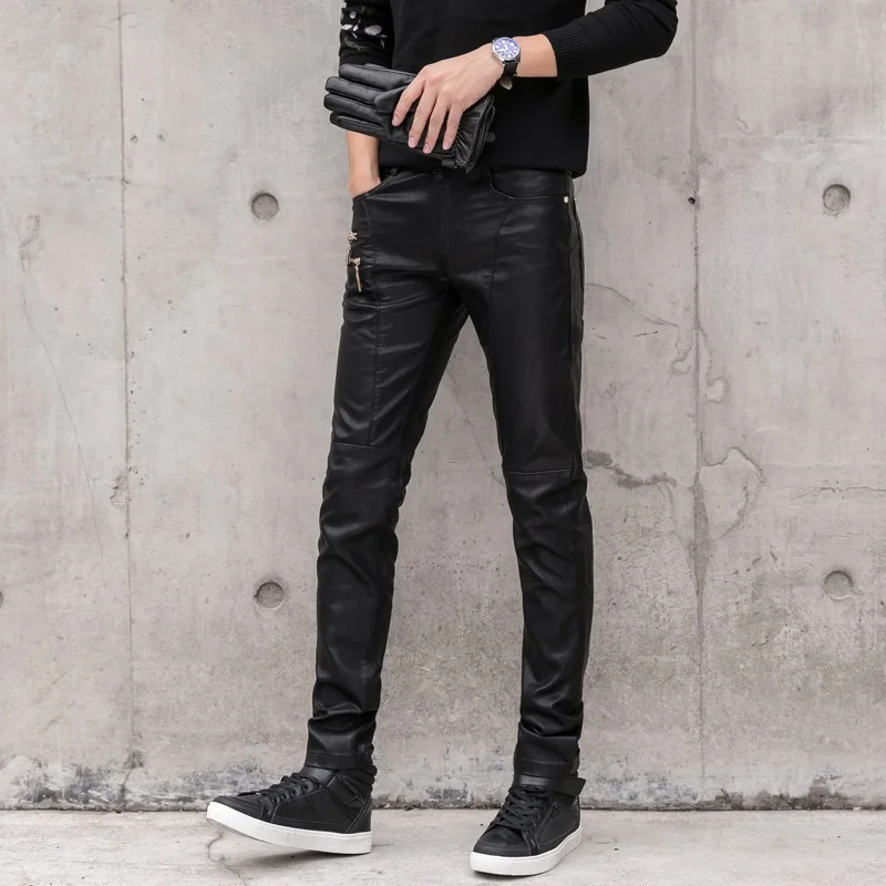Новинка; В стиле панк; Модные полностью из искусственной кожи в стиле пэчворк обтягивающие джинсы для мужчин slim fit вечерние одежда черные брюки мужские кожаные брюки для мужчин PK6-3