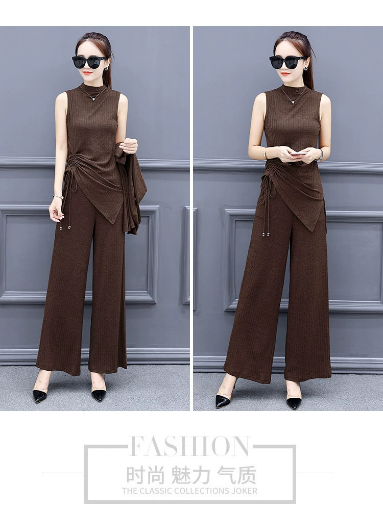 Женский трикотажный спортивный костюм, Повседневный Кардиган с длинным рукавом и пуловер без рукавов, комплект из 3 предметов, весна-осень 2019