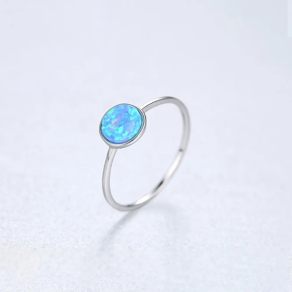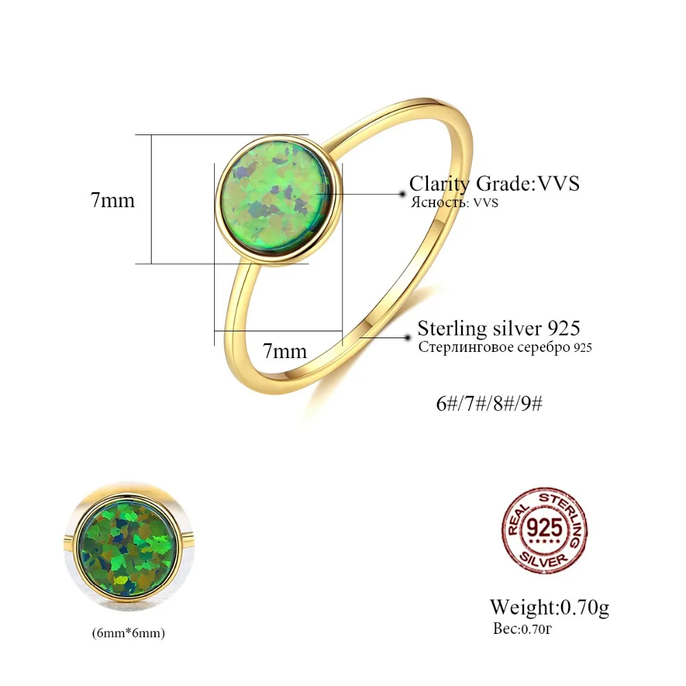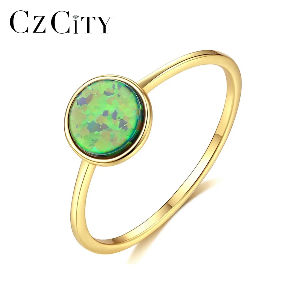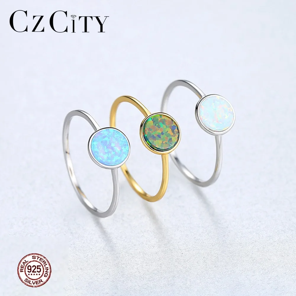 CZCITY минималистский 7 мм круглый огненный опал кольца для женщин синийзеленыйбелый женские разноцветные туфли на тонком круг кольца из серебра 925 пробы, ювелирные изделия, аксессуары