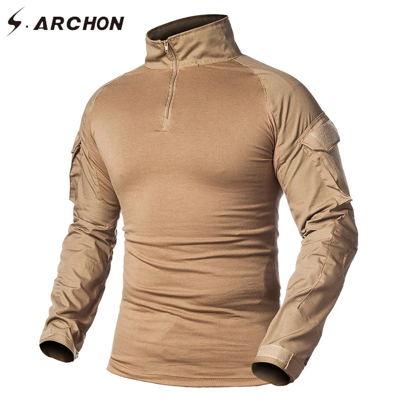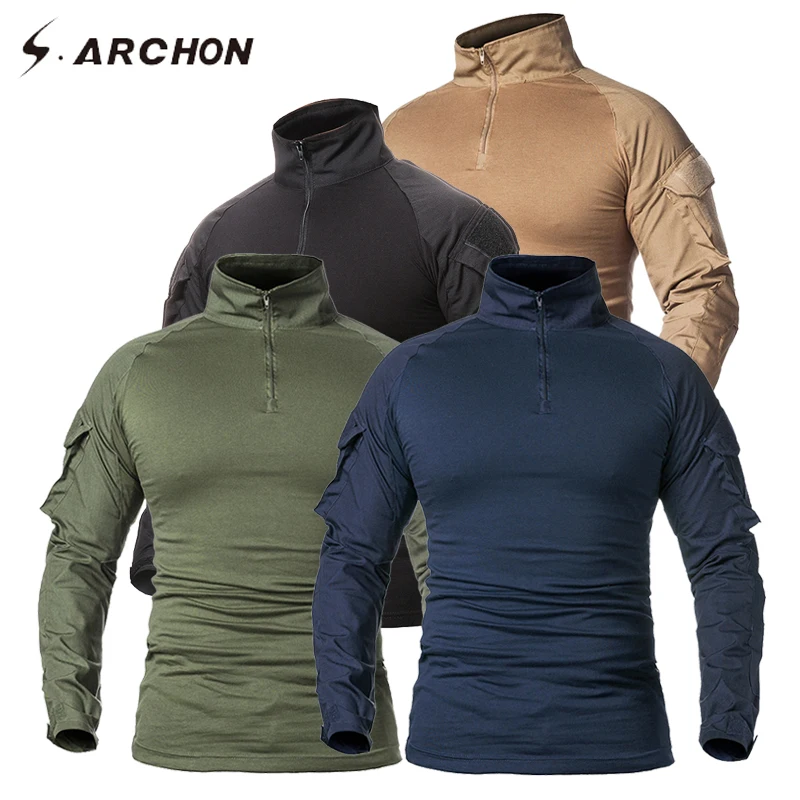 Рубашка S.ARCHON, военная, тактическая, темно-синяя, однотонная, камуфляжная, для страйкбола, пейнтбола, футболка с длинным рукавом для мужчин
