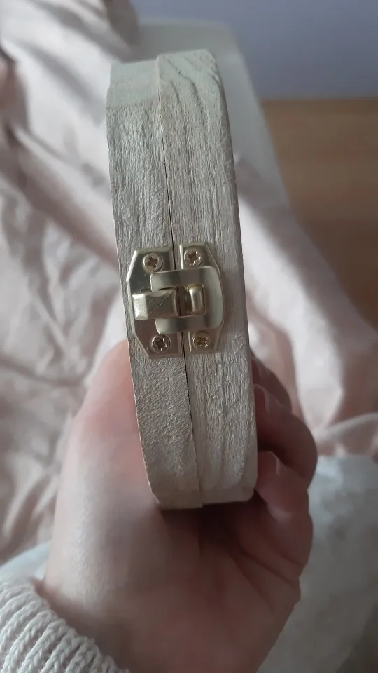 Красивая! Это твердая древесина. Внутри у него есть все отверстия для первых зубов, волос и пупка.