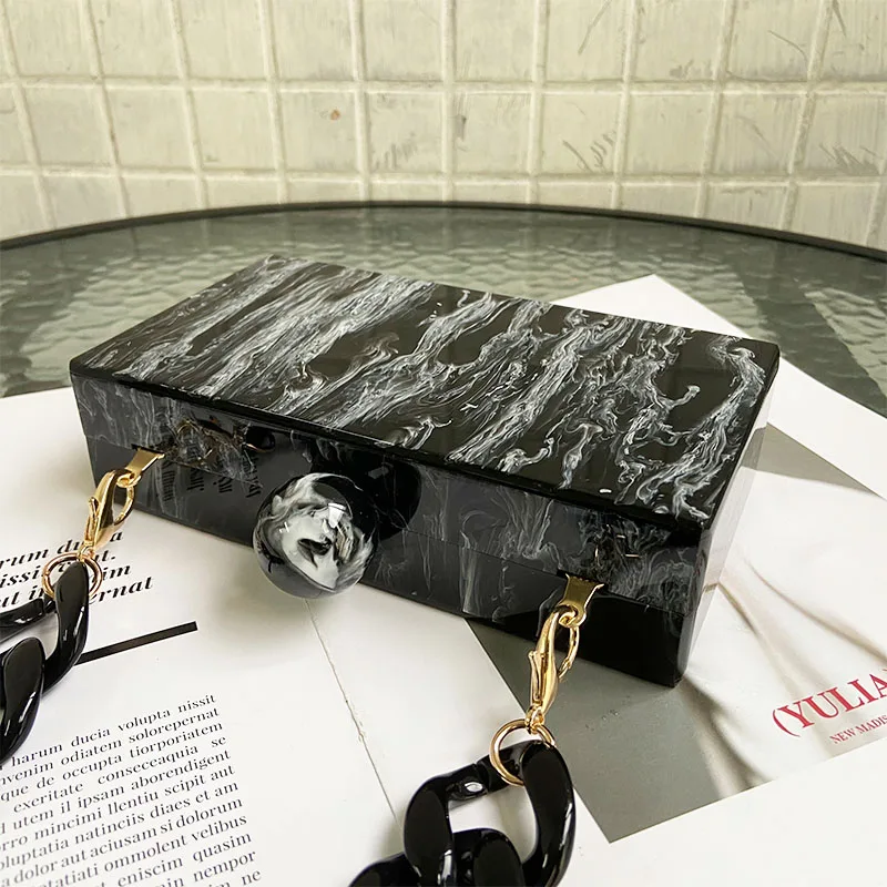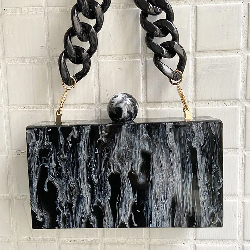 Акриловые сумки с мраморным рисунком для женщин, модные винтажные сумки-мессенджеры черно-белого цвета с чернильным рисунком, вечерний клатч, сумки вечерние и выпускного вечера