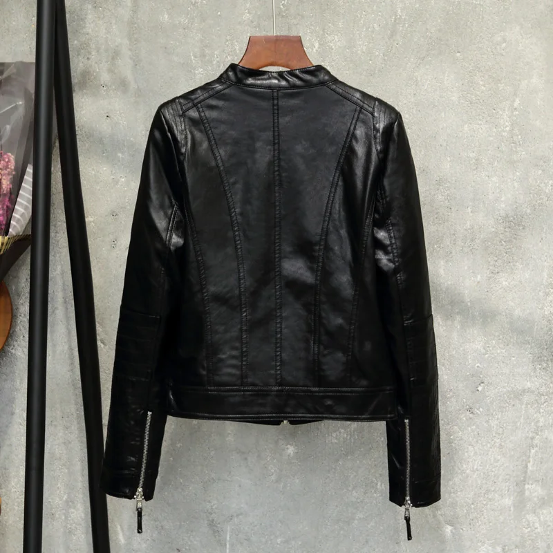 Куртка женская из искусственной кожи, с круглым вырезом, в европейс...