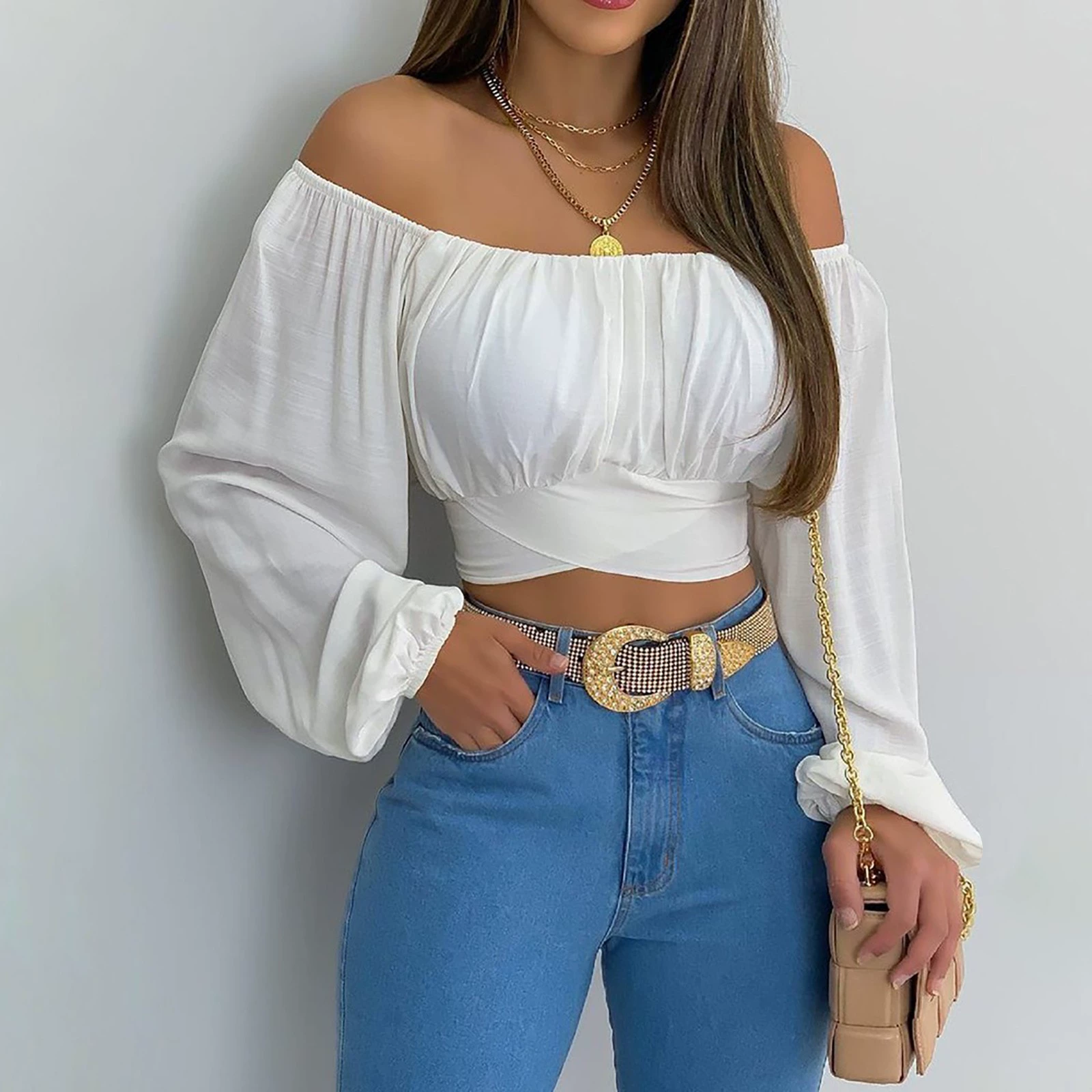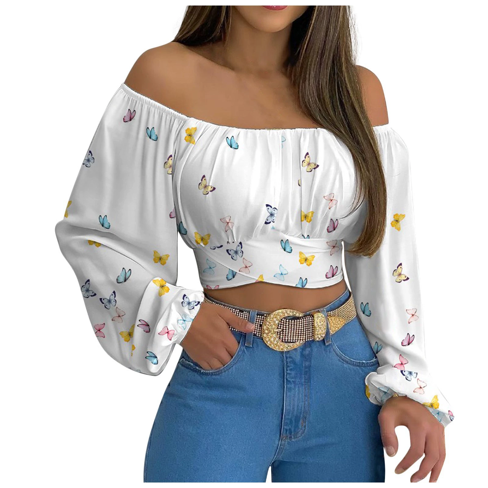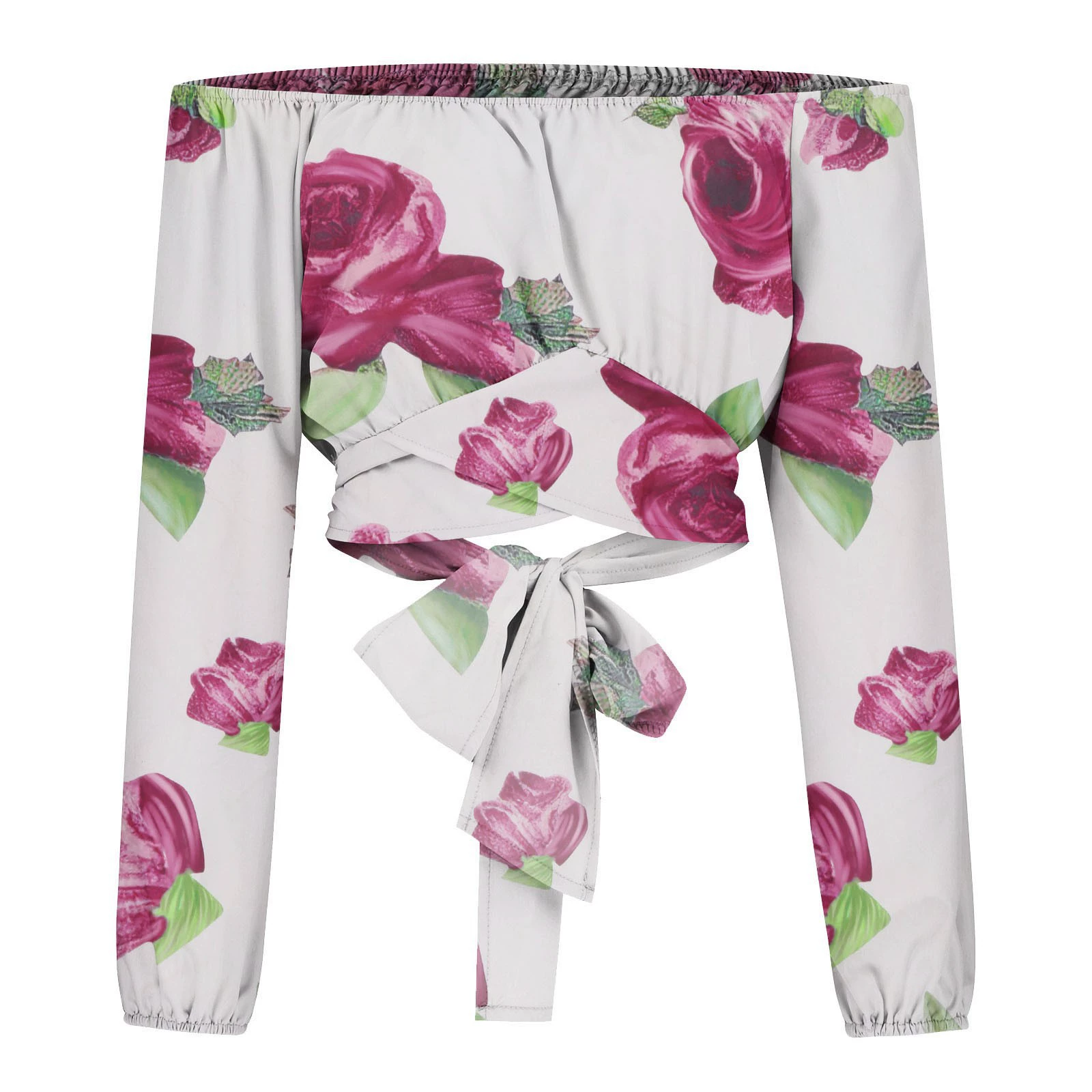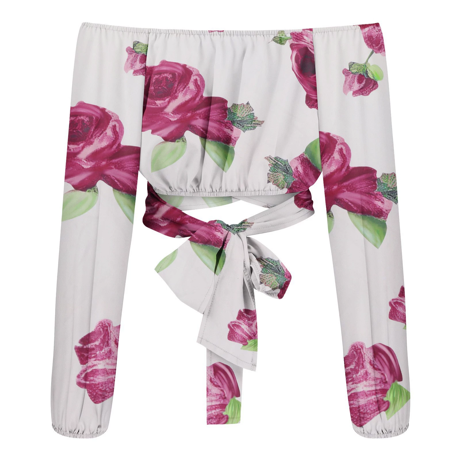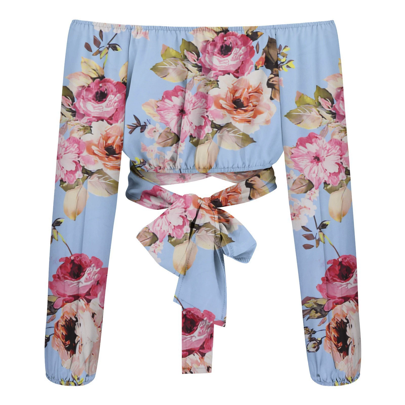 Новая модная короткая блузка с воротником-лодочкой, Женская Повседневная облегающая женская рубашка с длинным рукавом и цветочным принтом, сексуальная женская одежда, блузы 21999