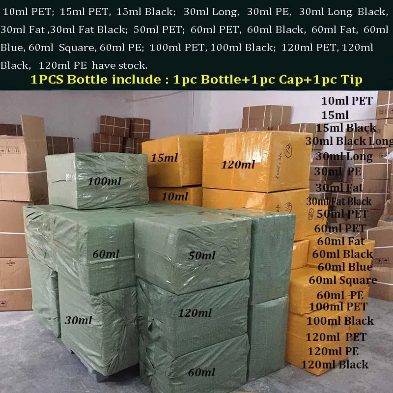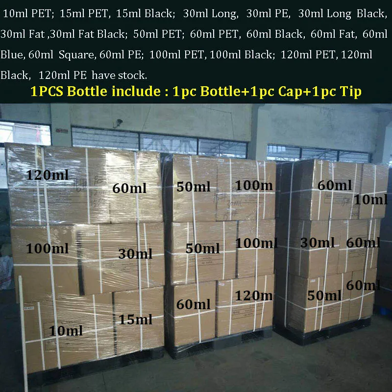 100 шт пустые бутылочки для жидкости, 10 мл, 15 мл, 30 мл, 60 мл, 100 мл, 120 мл, ПЭТ длинный флакон-капельница, пластиковая бутылка для гель для ногтей
