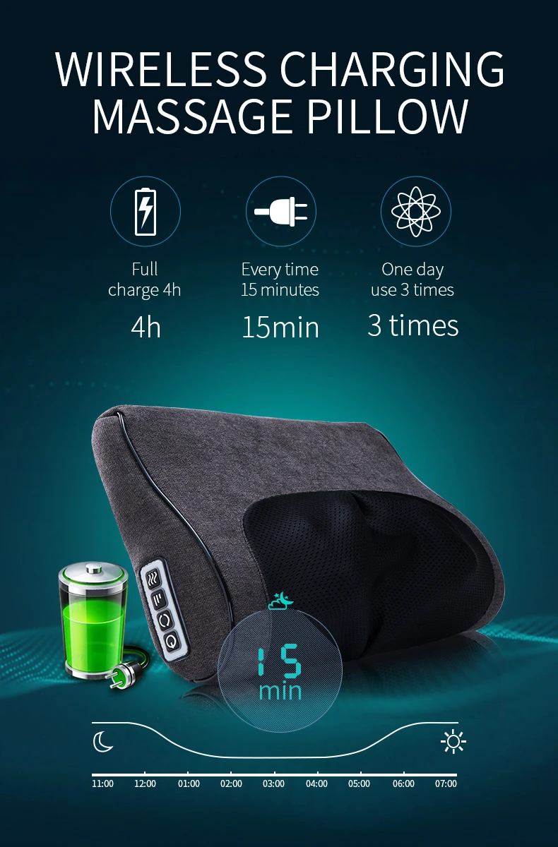 Jinkairui шиацу разминающий перезаряжаемый массажер для шеи Подушка с волнистым изгибом домашний автомобильный массажер двойного назначения здоровый массажер для плеч