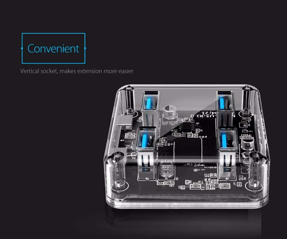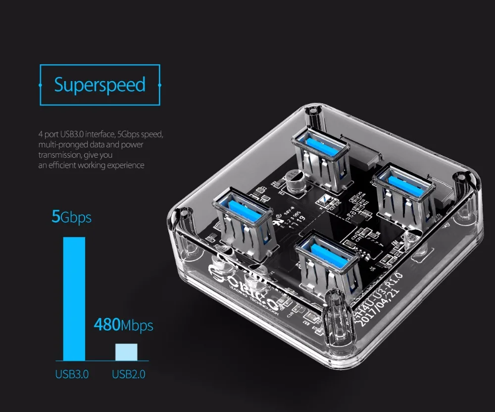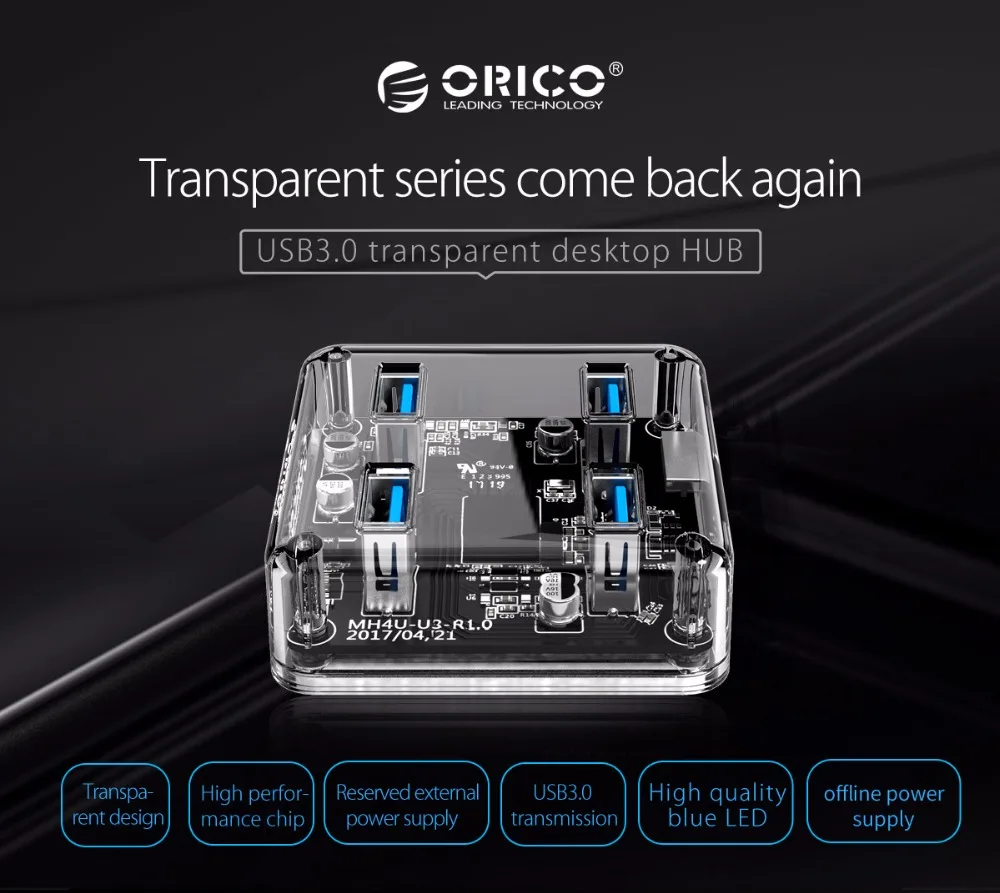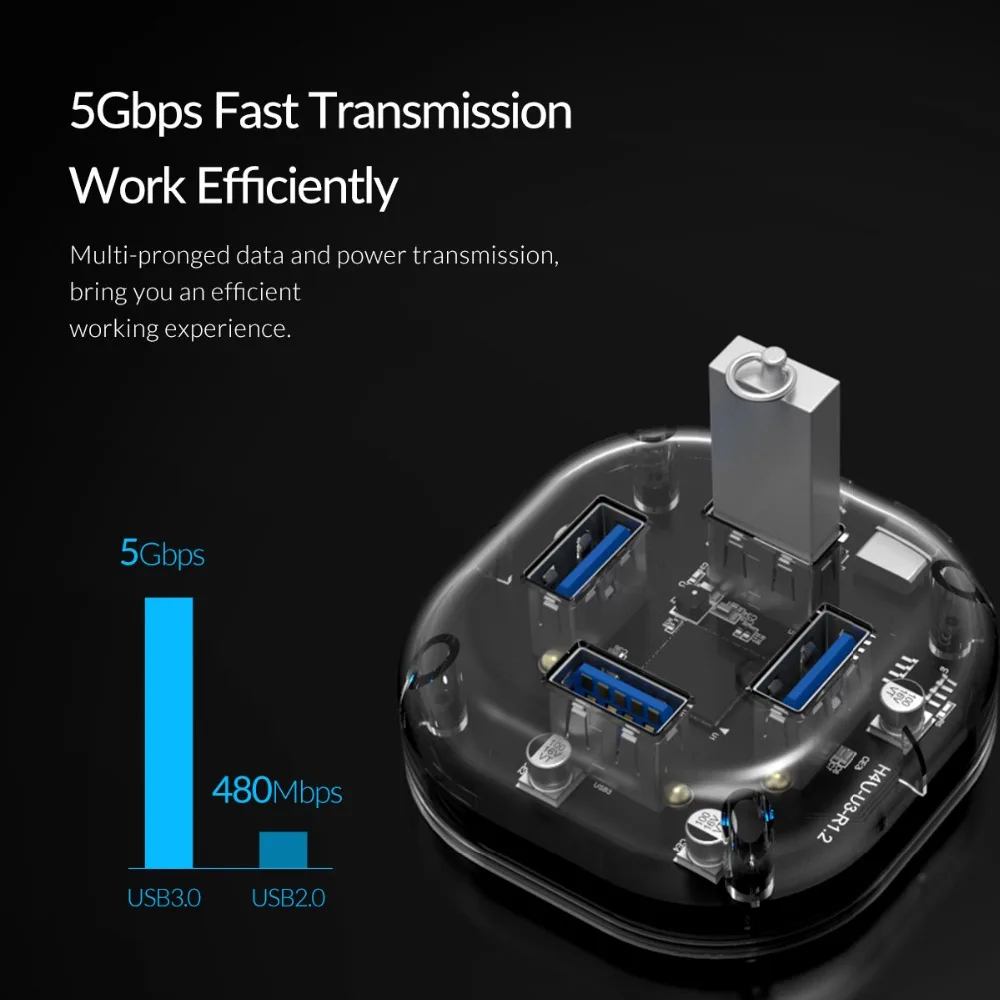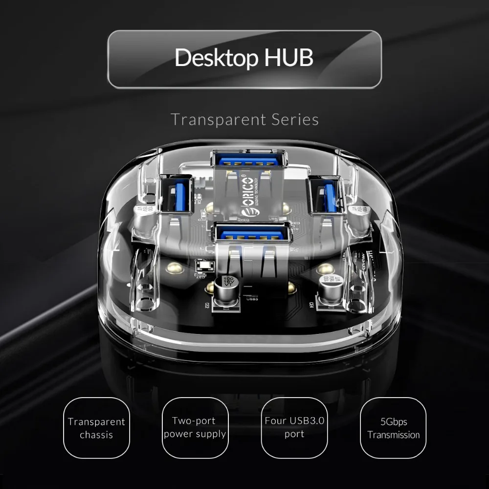 ORICO 47 портов USB3.0 концентратор прозрачный высокоскоростной с микро USB интерфейсом питания usb-хаб Поддержка OTG для MacWindowsLinux