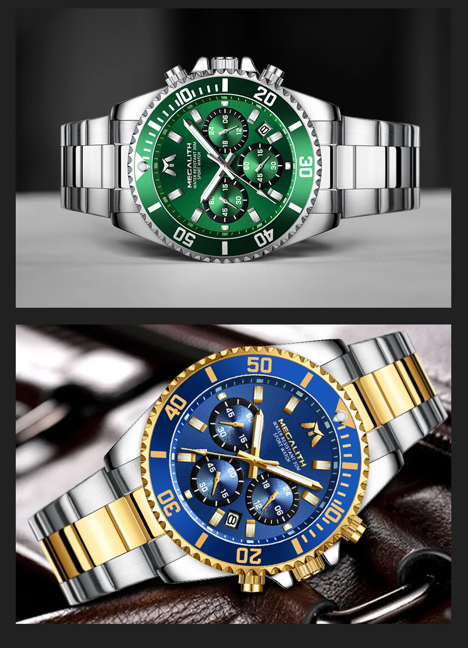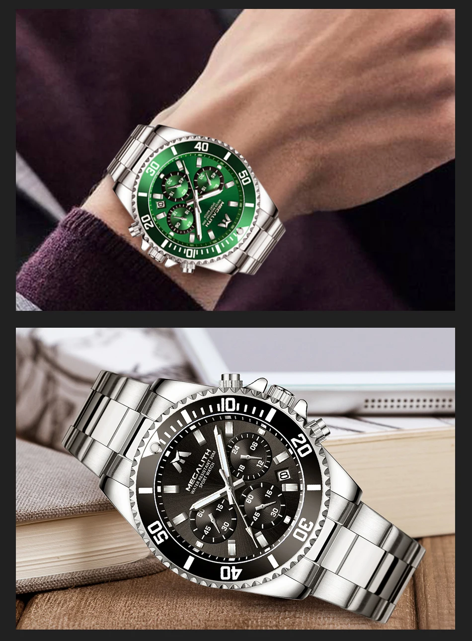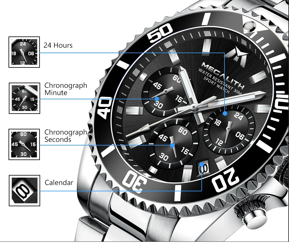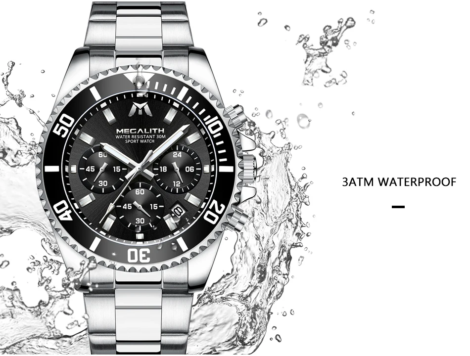 Часы мужские кварцевые, водонепроницаемые, со стальным хронографом и датой