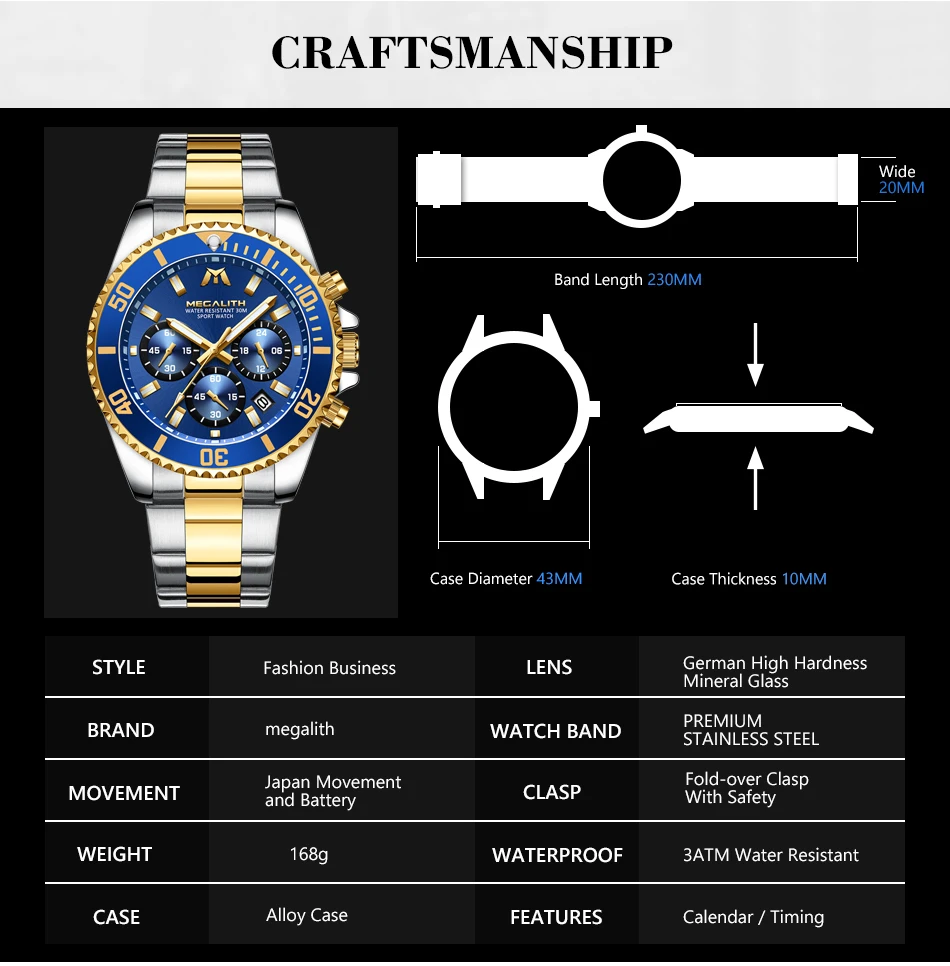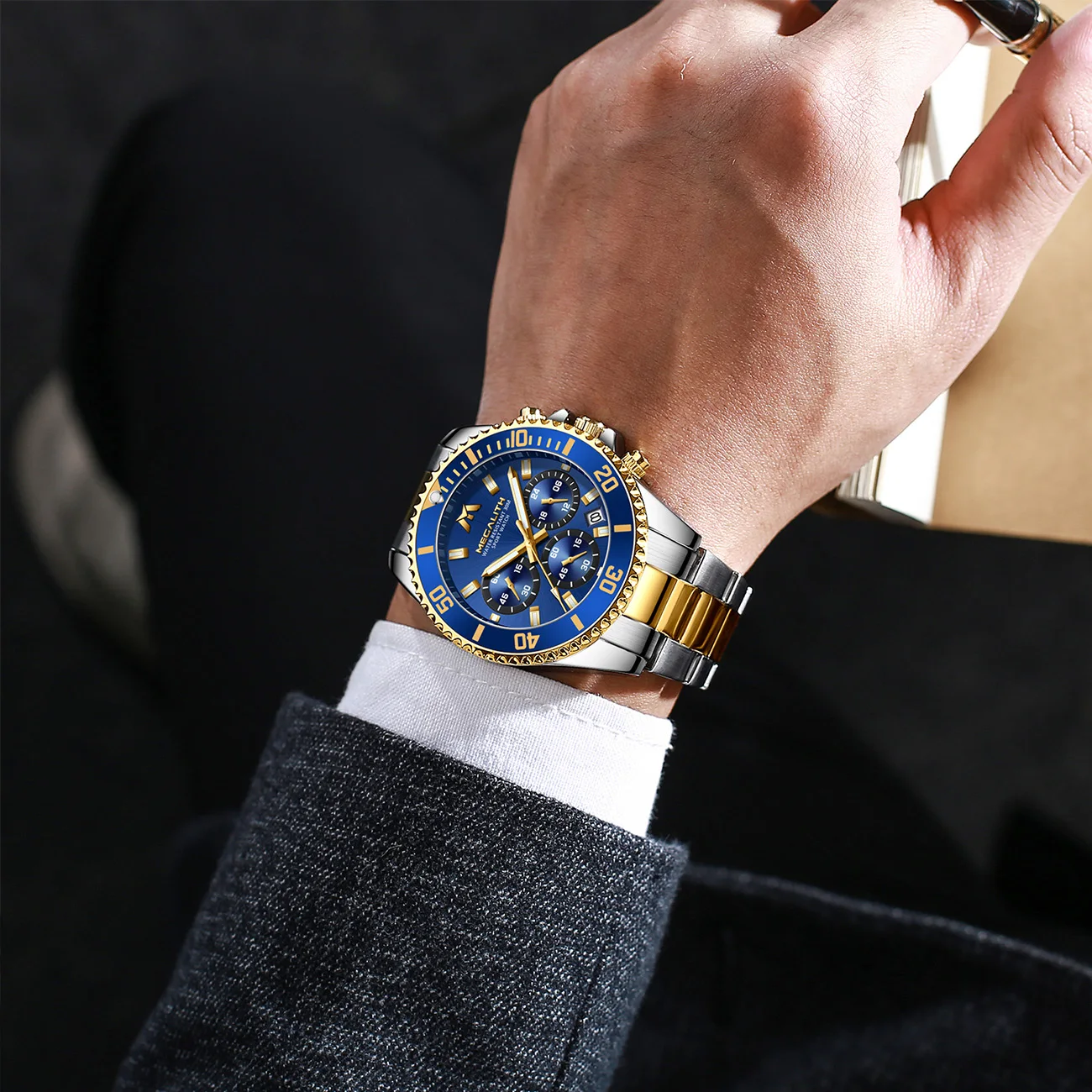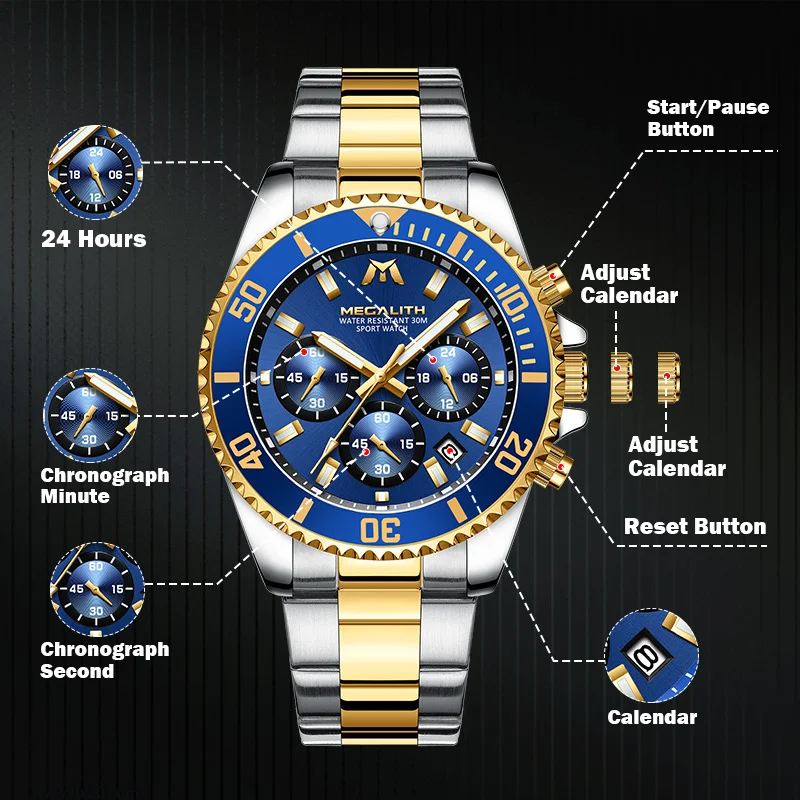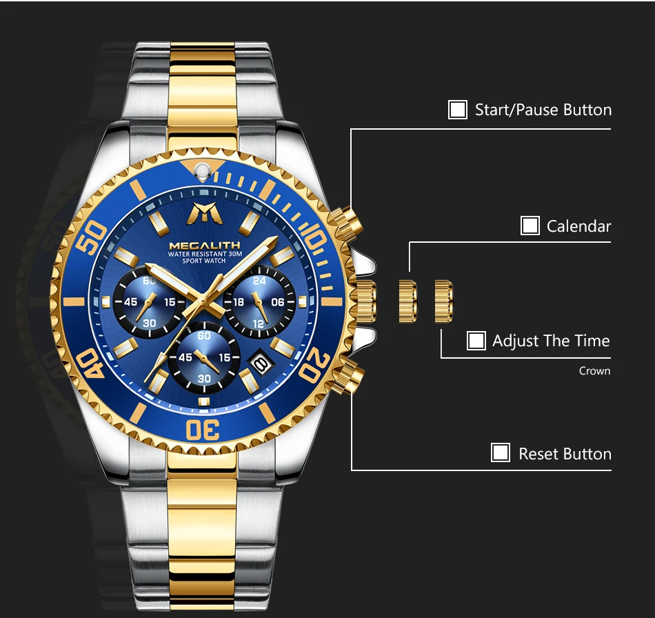 Часы мужские кварцевые, водонепроницаемые, со стальным хронографом и датой
