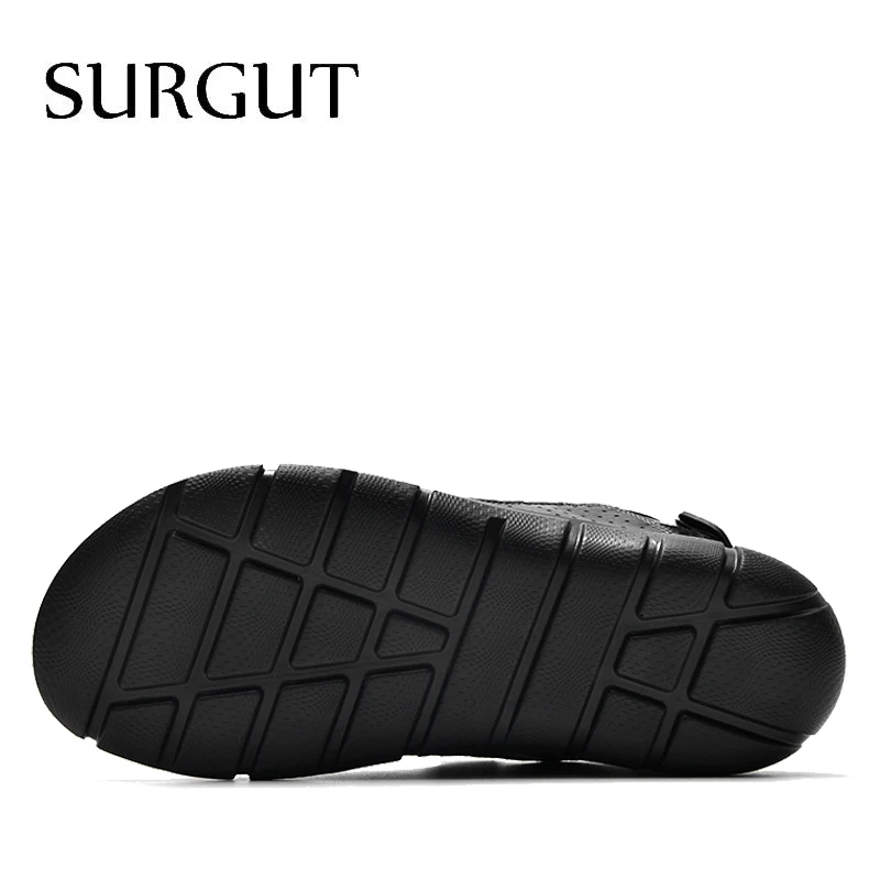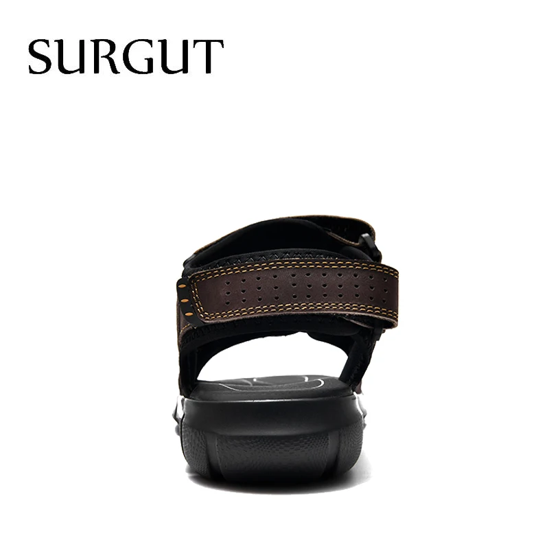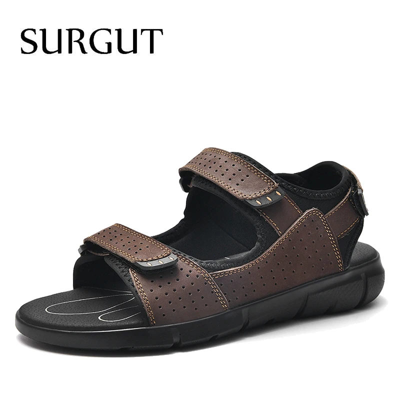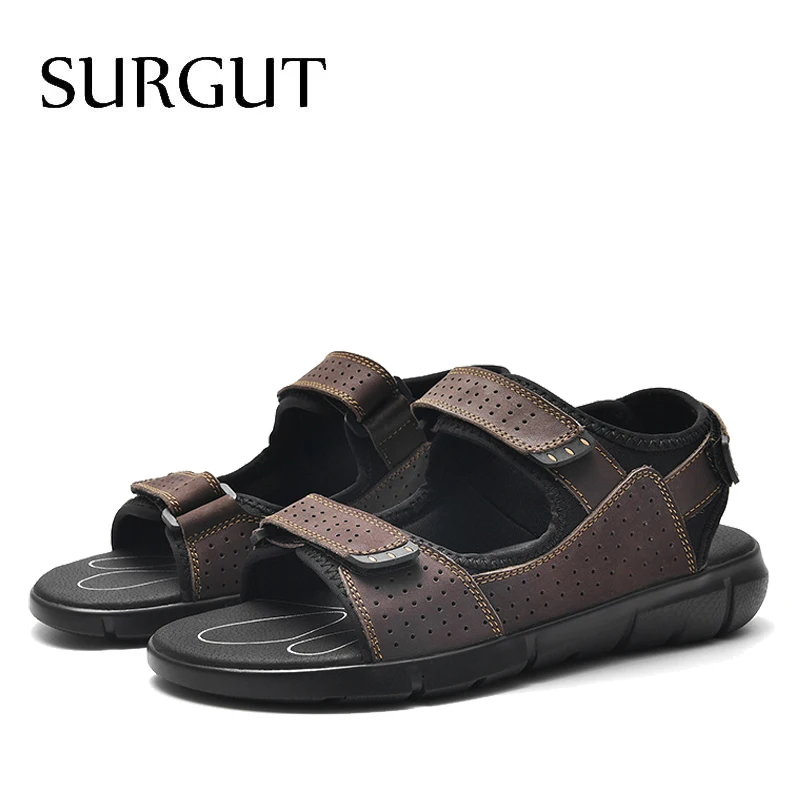 Мужские пляжные дышащие босоножки SURGUT, коричневые сандалии из натуральной кожи, обувь больших размеров 38~48 для лета, 2019
