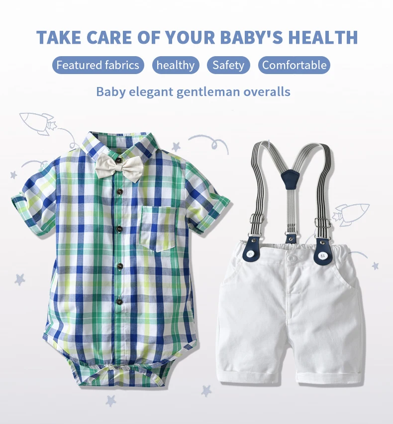 Клетчатая рубашка с бантом для маленьких мальчиков, одежда для новорожденных, летний костюм на день рождения, яркие белые шорты, комплект