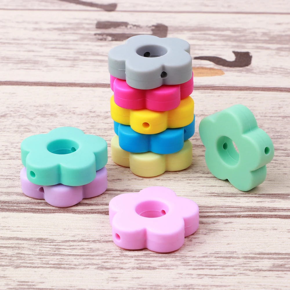 TYRY.HU 10 шт. силиконовые бусины цветок ребенка прорезывания зубов Уход DIY ремесла прорезывания зубов жевательные бусины зажимы пустышка цепь аксессуары Игрушка