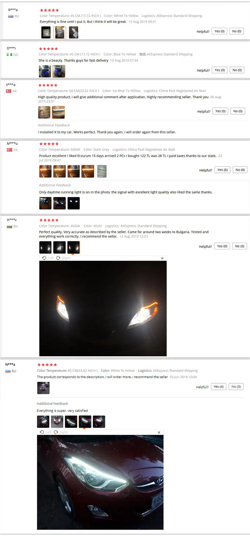 Посылку доставили быстро, наверно потому что состояла из нескольких заказов, в общем полосы нормальные все работает, но выглядит кустарненько, видно что внутри просто светодиодная лента и светит больше точечно, рассчитывал что будет более распределенно свет падать. Продавцу благодарен
