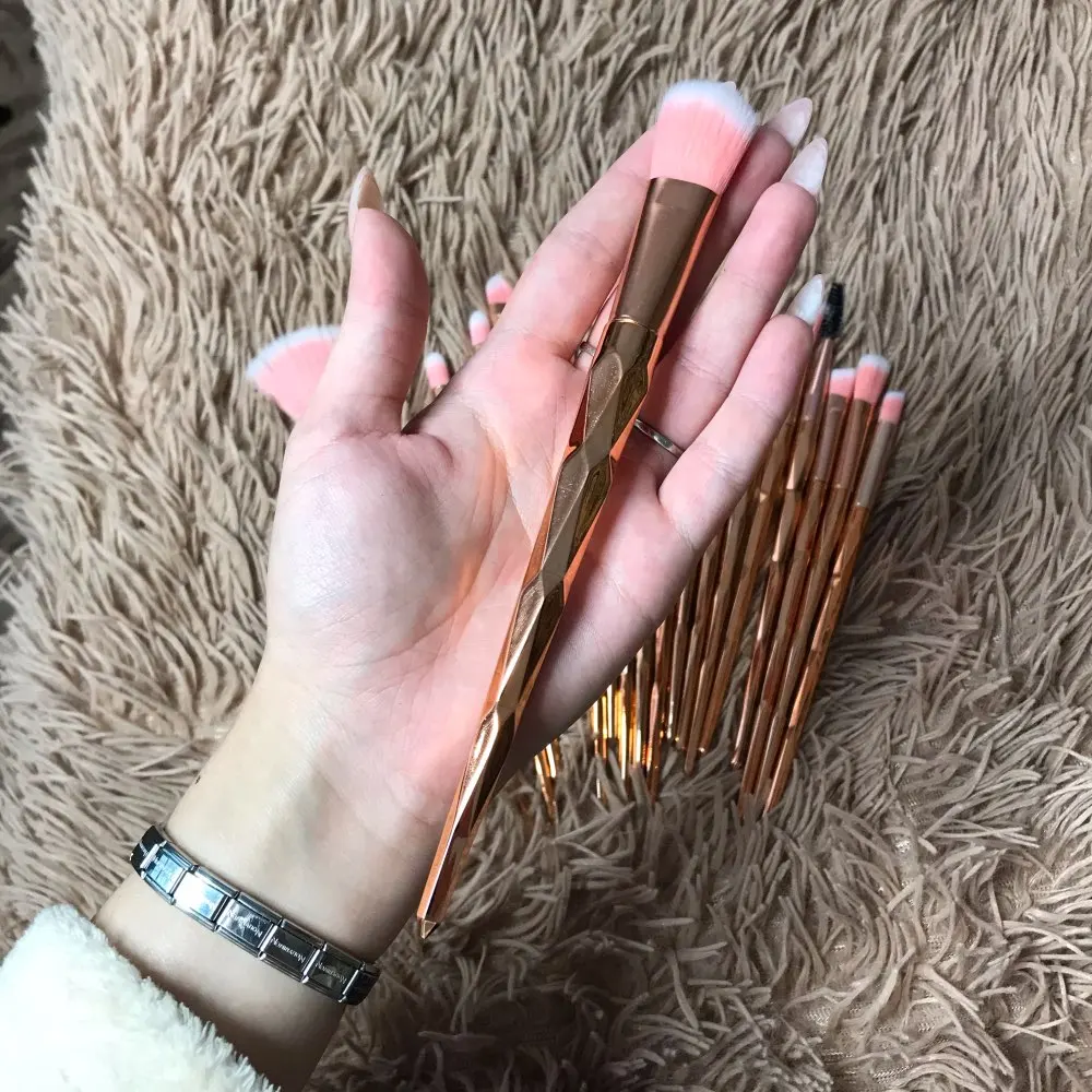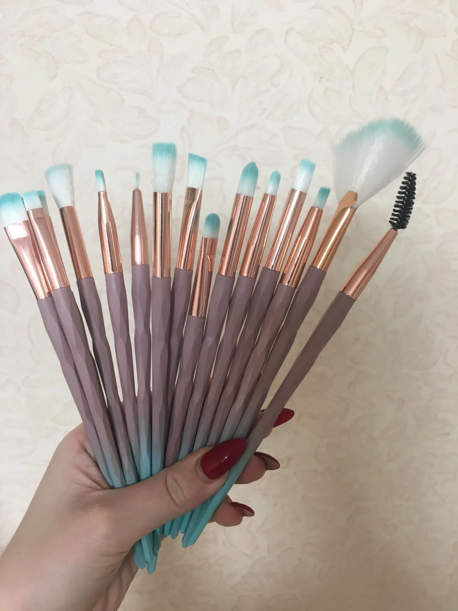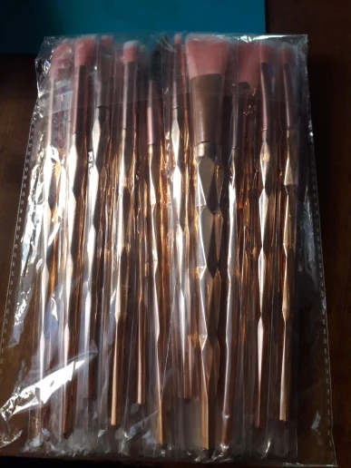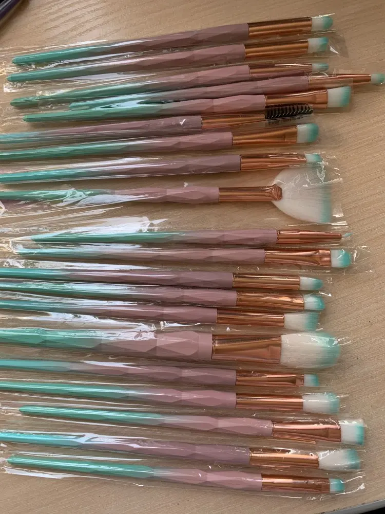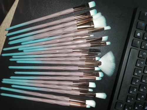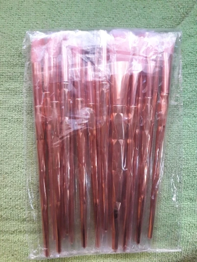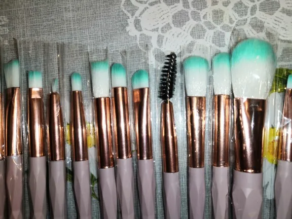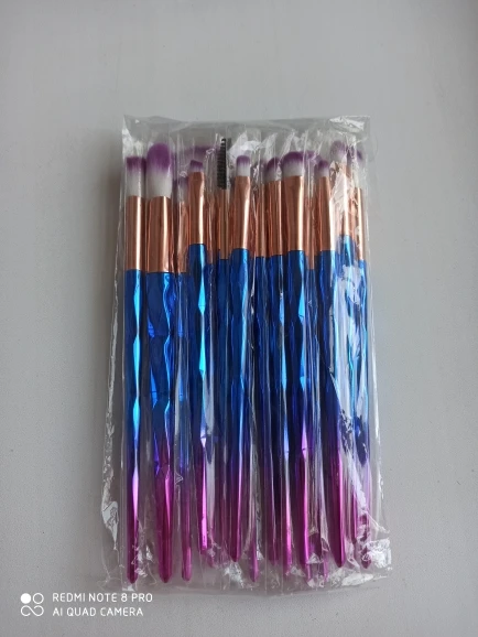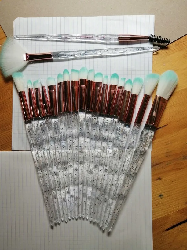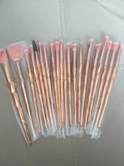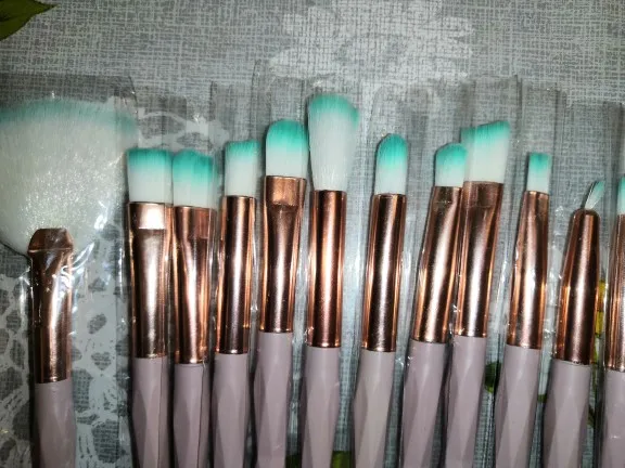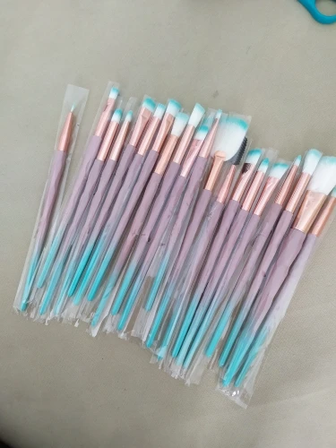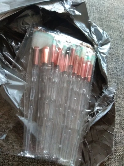 заказала из этого магазина два набора, и оба на фото. конкретно этот пришёл в правильном количестве - 20 штук, каждый в отдельной упаковке. волоски торчат, но за такую цену взять ножнички и убрать эти волоски вообще не проблема. Есть мягкие и плотные кисти. жду не дождусь возможности попробовать. Ручка длинная, в косметичку не влезли, стоят в стакане