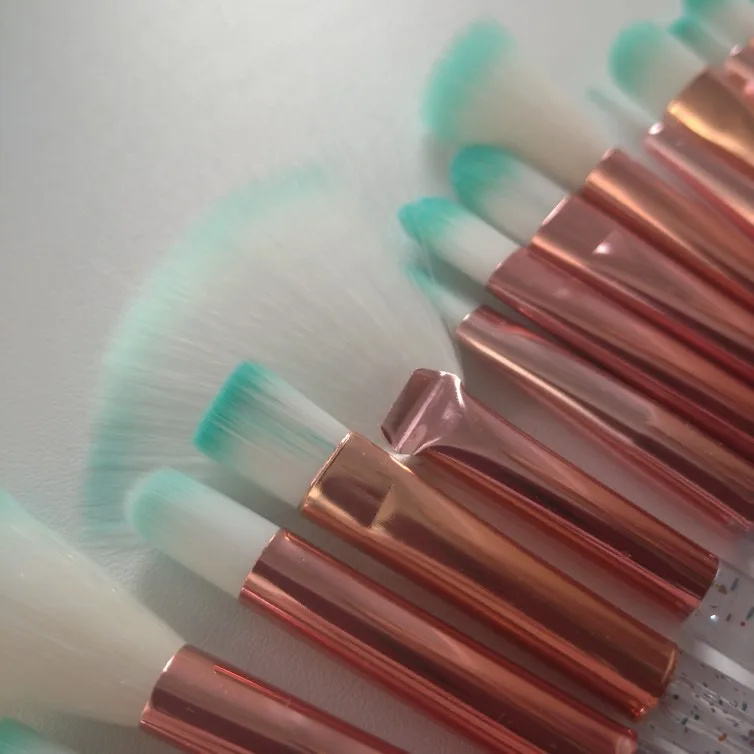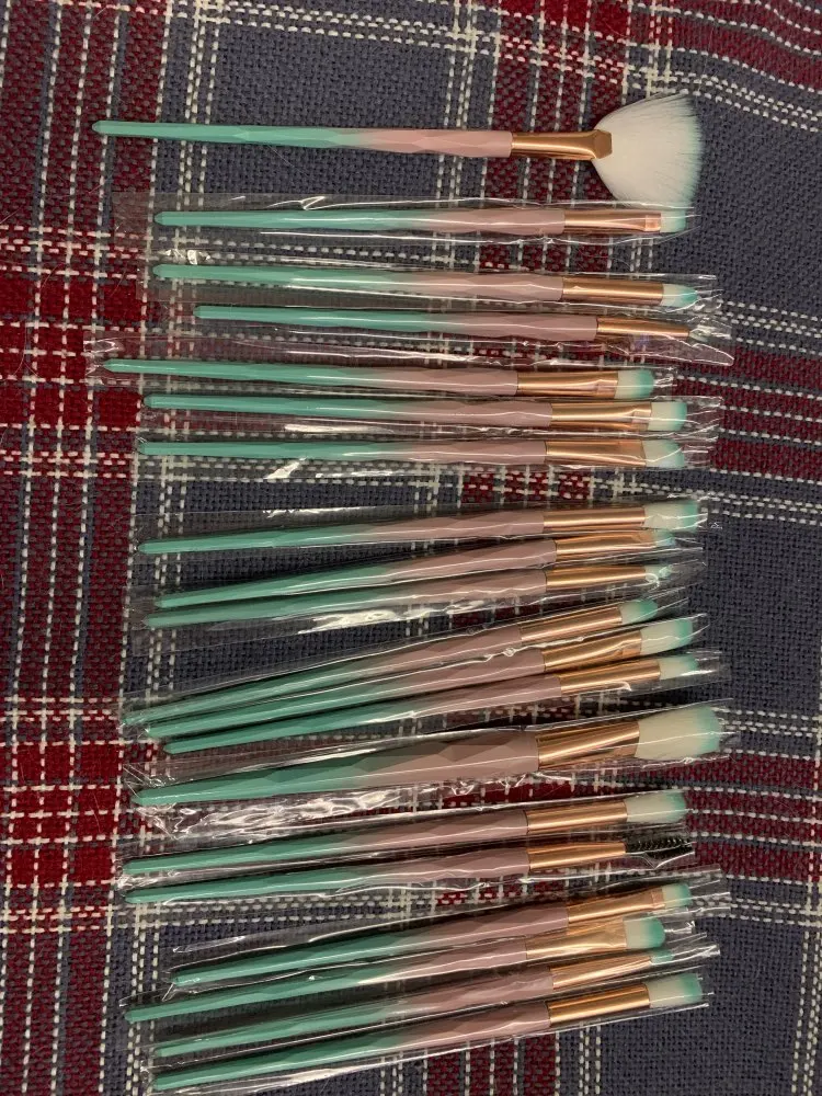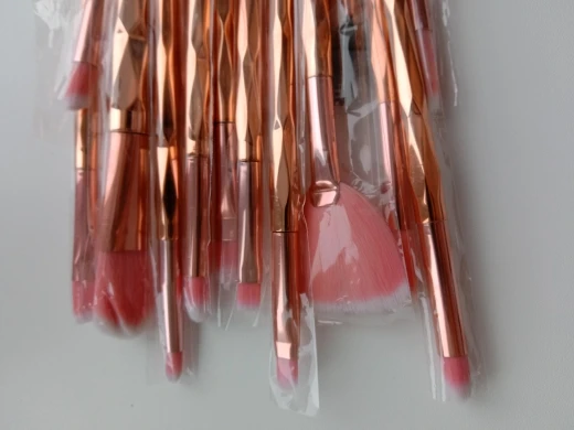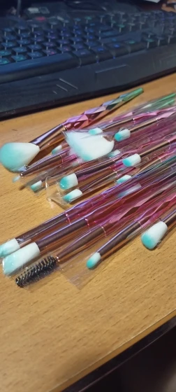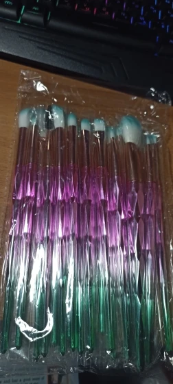 Товар пришёл за месяц, в плотной упаковке. Каждая кисть была также упакована в отдельную полиэтиленовую обертку. Ворс мягкий, не вылазит. Цвет кистей соответствует, приятный на глаз, милый. Рекомендую.