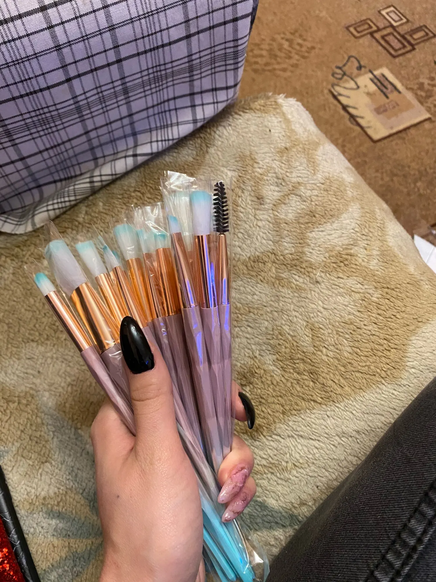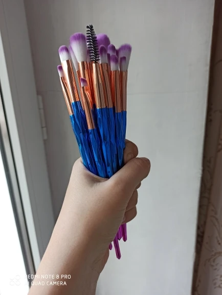 Девочки! Заказывайте, не пожалеете. Посылка пришла невероятно быстро, через 11 суток уже была у меня! Заказывала в Краснодарский край. Кисточки по качеству вообще "вау", нормального размера, а не мини, как во многих магазинах! Красивый дизайн! Ворсинки кистей потрясающего качества. Ничего не выпадает, не отпадает. Железные зажимы сделаны отлично, без трещин и царапин. Посылка пришла без запаха, без повреждений. Продавца рекомендую!