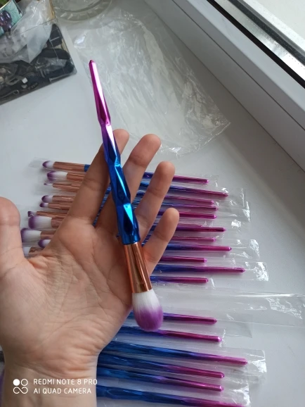 Очень довольна покупкой!Кисточки пришли за 10 дней, прекрасно отслеживались, хорошо запакованы. Ворс мягкий, не вылазиет. +Выглядят очень красиво. На нескольких кисточках были волоски длиннее основном длинный ворса, но это не страшно, можно с лёгкостью подрезать. Рекомендую!