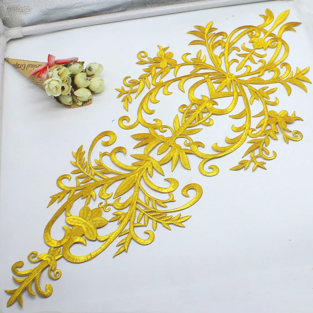 Термоаппликации для одежды, 50,5 см х 25 см, с золотыми вышитыми цв...