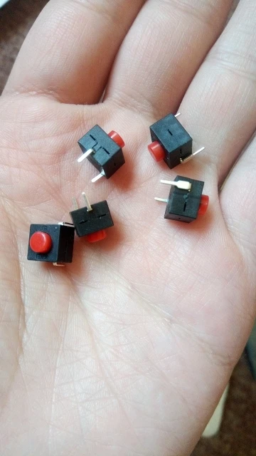 Два с лишним месяца волочился заказ до Владимирской обл Работают отлично, на слабо точную коммутацию пойдут. Кнопки с фиксацией, каждое нажатие замыкает или размыкает контакты последовательно. Выводы со смещением, как относительно корпуса, так и друг друга.