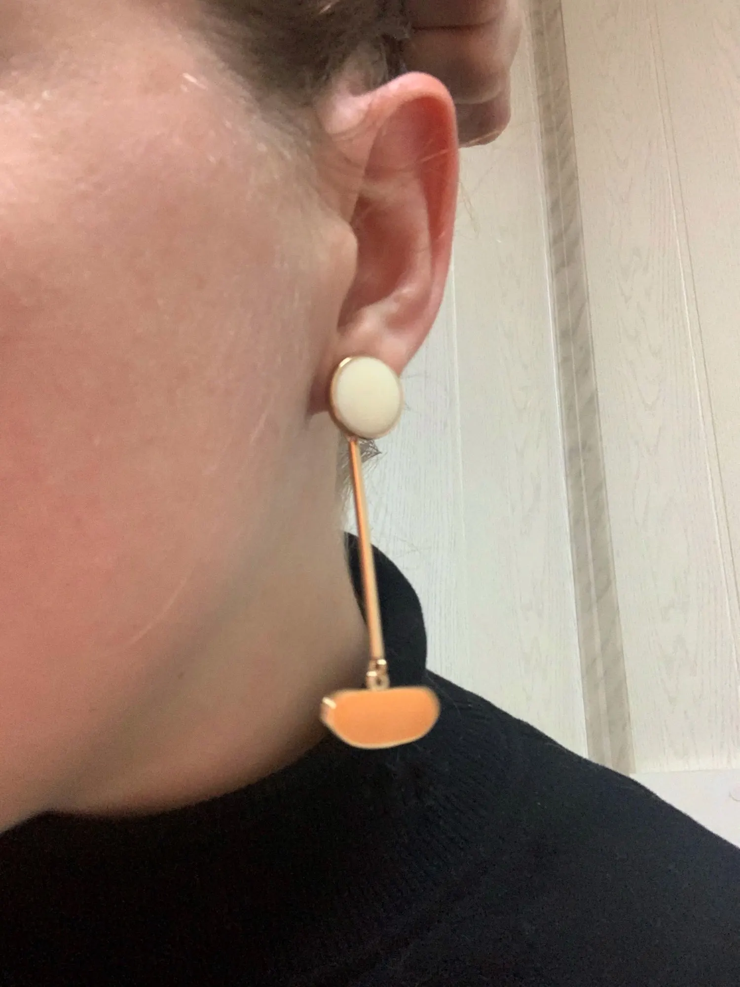 Симпатичные серьги, но имеются небольшие дефекты, темный волосок на оранжевой сережке и черные точки на белой части других сережек. В целом понравились.