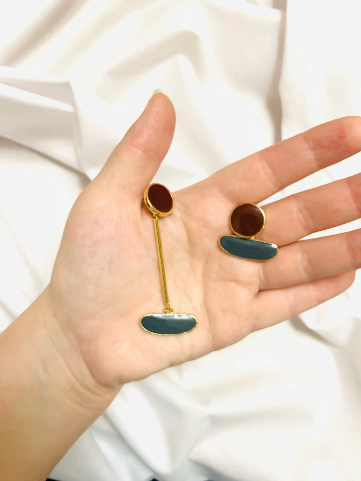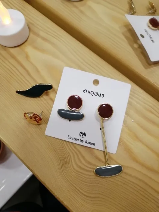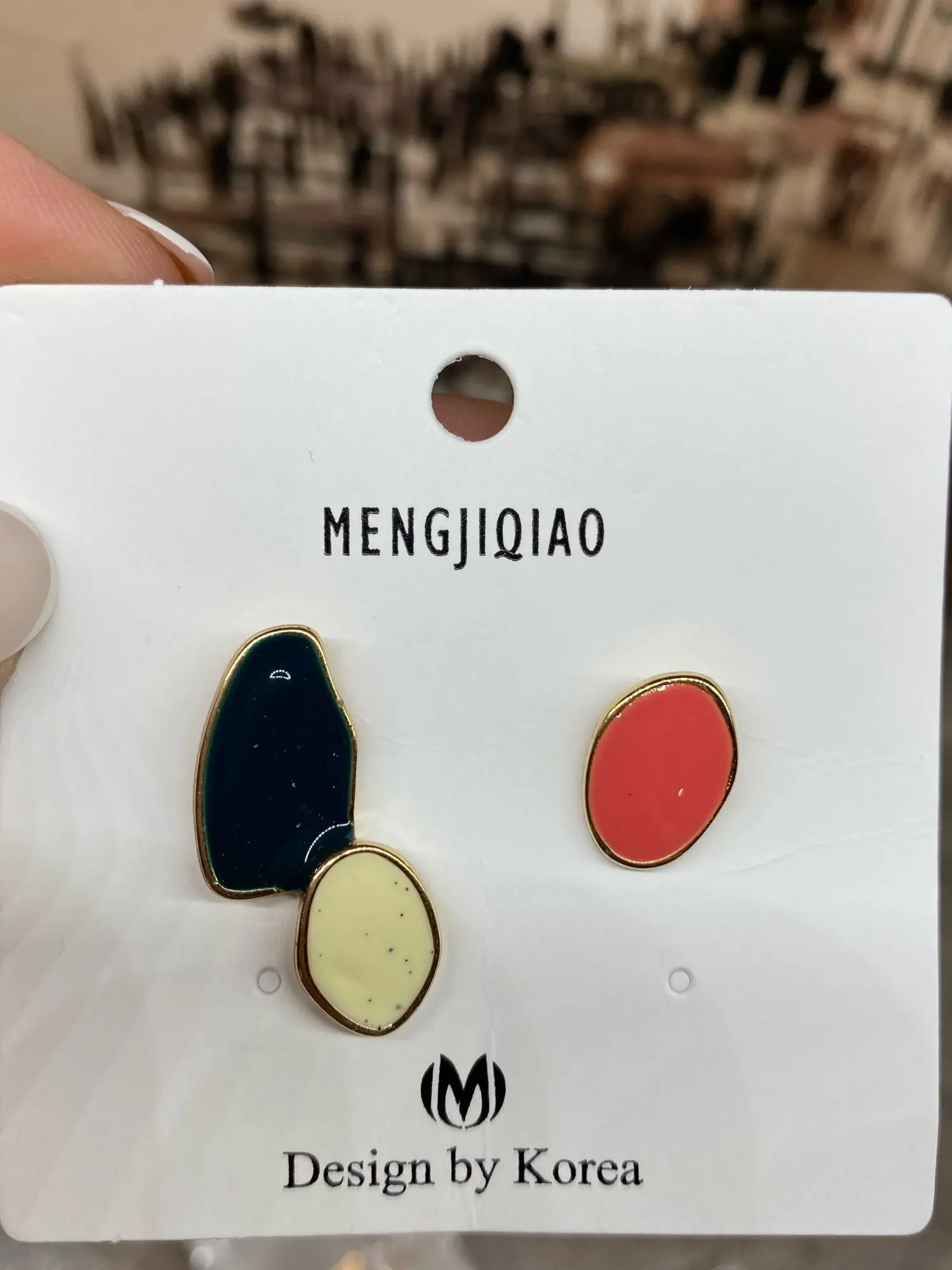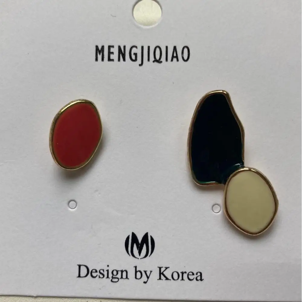 Женские эмалевые серьги-гвоздики, овальные, круглые, разноцветные, винтажные, асимметричные, геометрической формы
