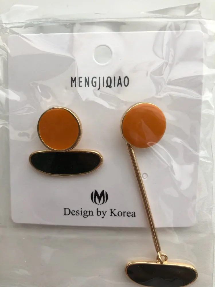 Серьги лёгкие, зажимы плотные. На эмали есть вздутия на одной из серёжек, но издалека это не заметно. А ещё с моими волосами серьги немного теряются, поэтому если вы тоже брюнетка либо берите другого цвета, либо убирать волосы наверх. Однако, если оставить их распущенными, то можно и не работу. Пришло за месяц с остальными товарами.