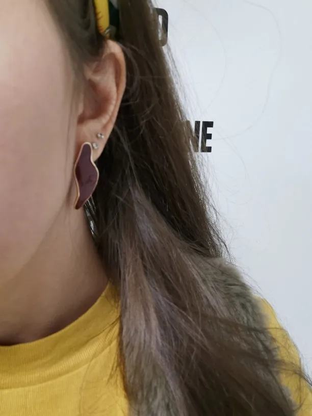 Серьги выглядят отлично, прокрашены все детали ровно, единственный косяк это кривые гвоздики, погнулись, но металл мягкий, не очень страшно.