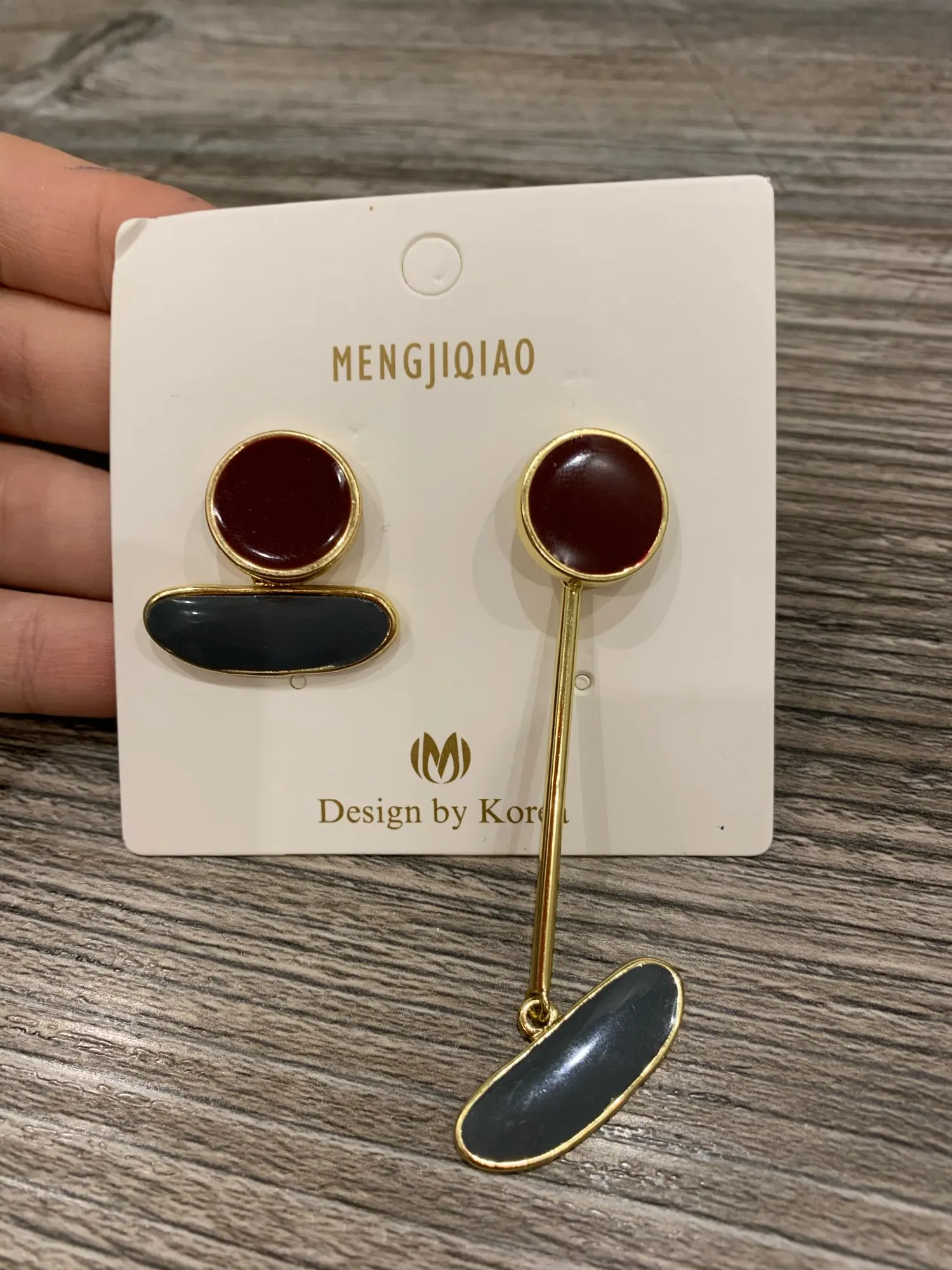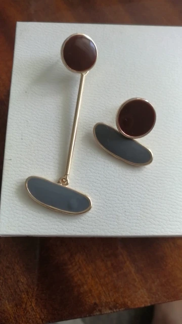 Красивые серьги, невесомые, вообще не ощущаются. Я думала, что длинная серёжка темно-зелёного цвета, а по факту оказалась чёрной. Выглядят суперстильно, рекомендую! Заказала себе такие же в белом цвете, буду комбинировать))