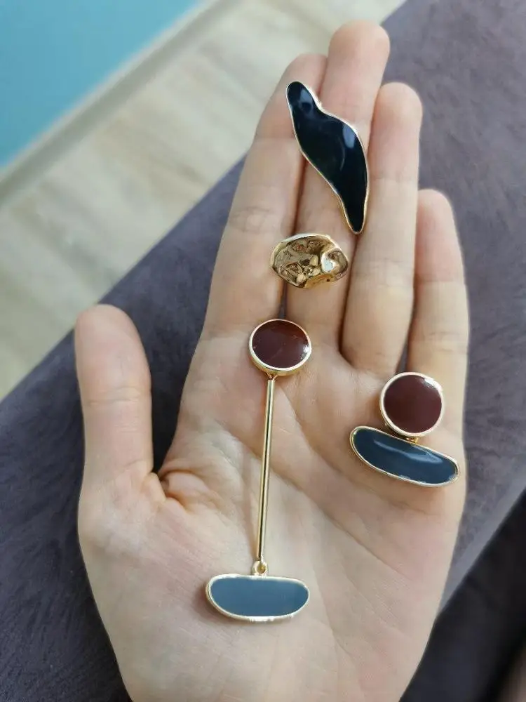Сережки супер! Заказывала одну пару (молочный цвет с бежевым на фото) год назад. Но сейчас от ношения маски с очками видимо зацепила неудачно одну серёжку, и из неё выпала эмаль молочная круглая. Поэтому заказала вновь. Разные наборчики, чтобы комбинировать их между собой. У одного набора застежка сзади отличается, надеюсь, это не оч критично