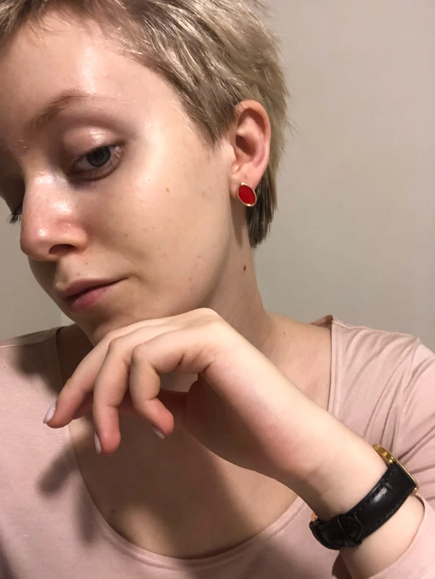 Все норм, только на золотой сережке чёрное пятно небольшое.
