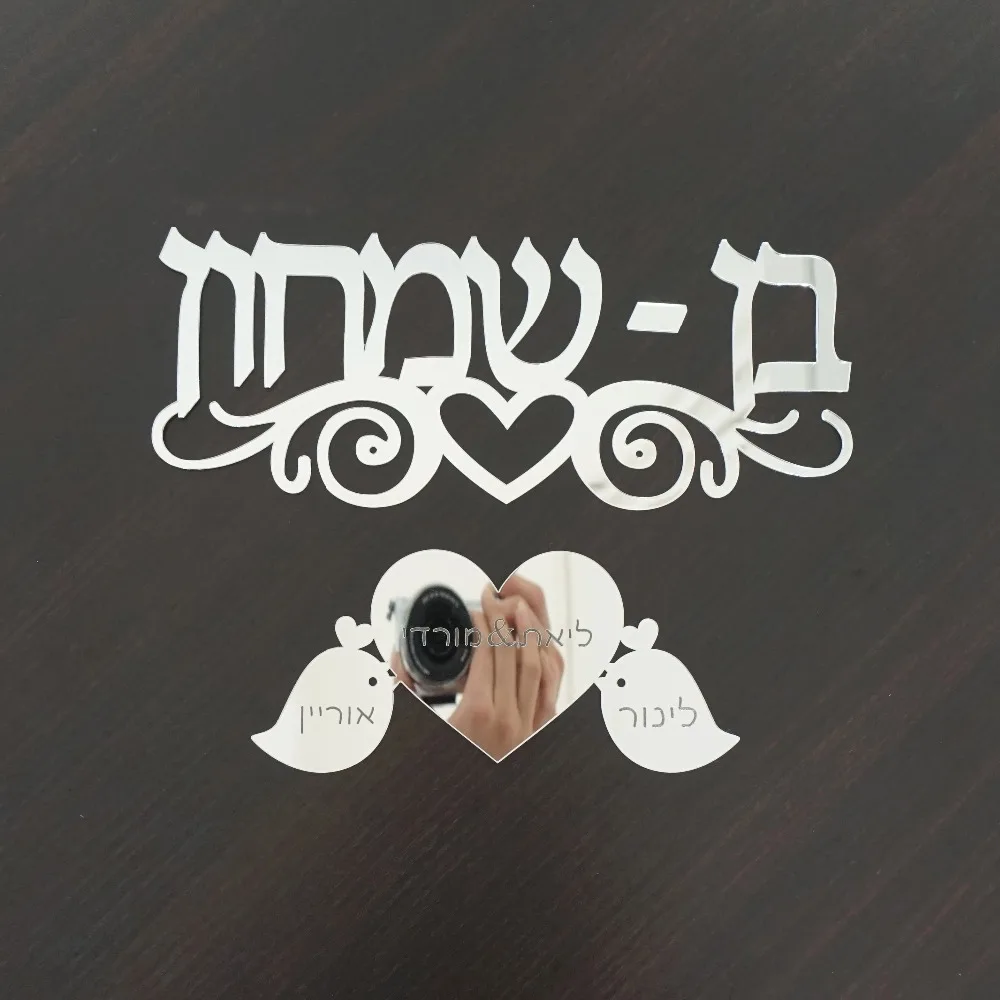 Акриловые зеркальные наклейки на дверь, персонализированные знаки на иврите, имена родителей и детей, милые птицы, украшение для дома в Израиле