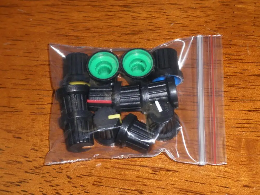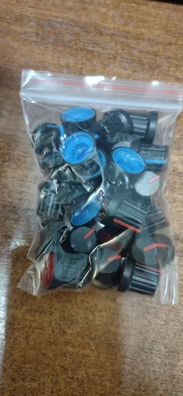 Обычные колпачки для резисторов или енкодеров. Мелкая насечка, плотно садится на вал диаметром 6мм.Это был самый дешёвый лот на Али. Заказам доволен.Качество пластика плотний не воняет, я б сказал что не очень круглый но это не видно.Как всегда доставка не быстрая в моем случае около месяца или чуть больше, если нужно тут и сейчас то лучше купить у себя в городе, но если не "горит" то Али хорошо подходит.