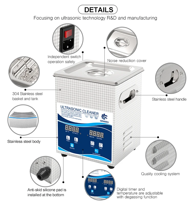Ультразвуковой очиститель для очков, 2 л, 120 Вт, нержавеющая сталь