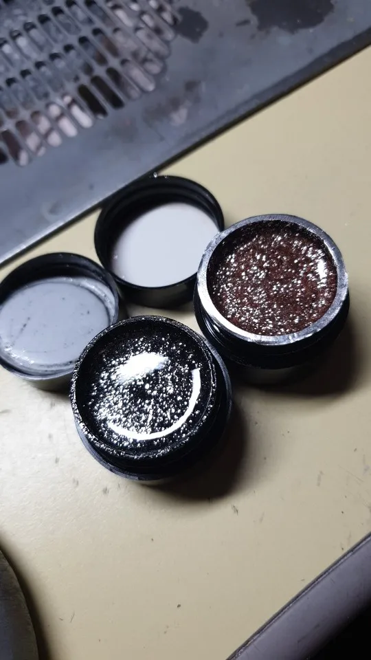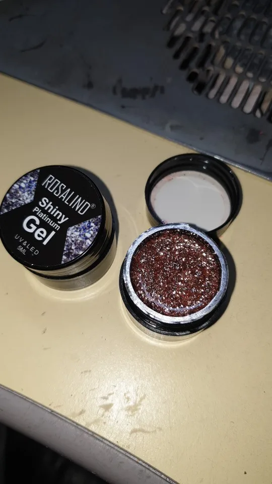 Посылка шла полтора месяца. Всё целое. Гель нереально переливается, очень красивые цвета, гели не прозрачные. Даже перекрыли тёмный гель-лак. Правда, баночки полные не прям под крышку. Нанесла на свой маникюр, чтобы показать, а потом еле оттёрла, т. к. блёстки превратились во втирку))