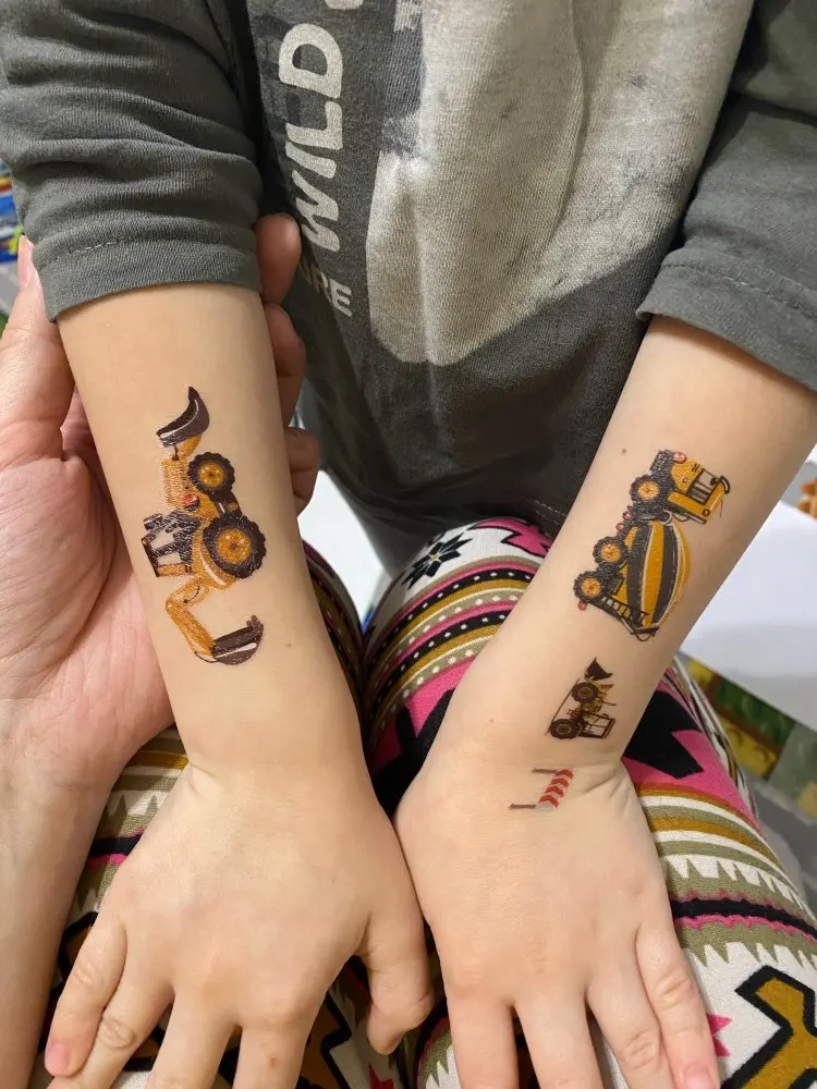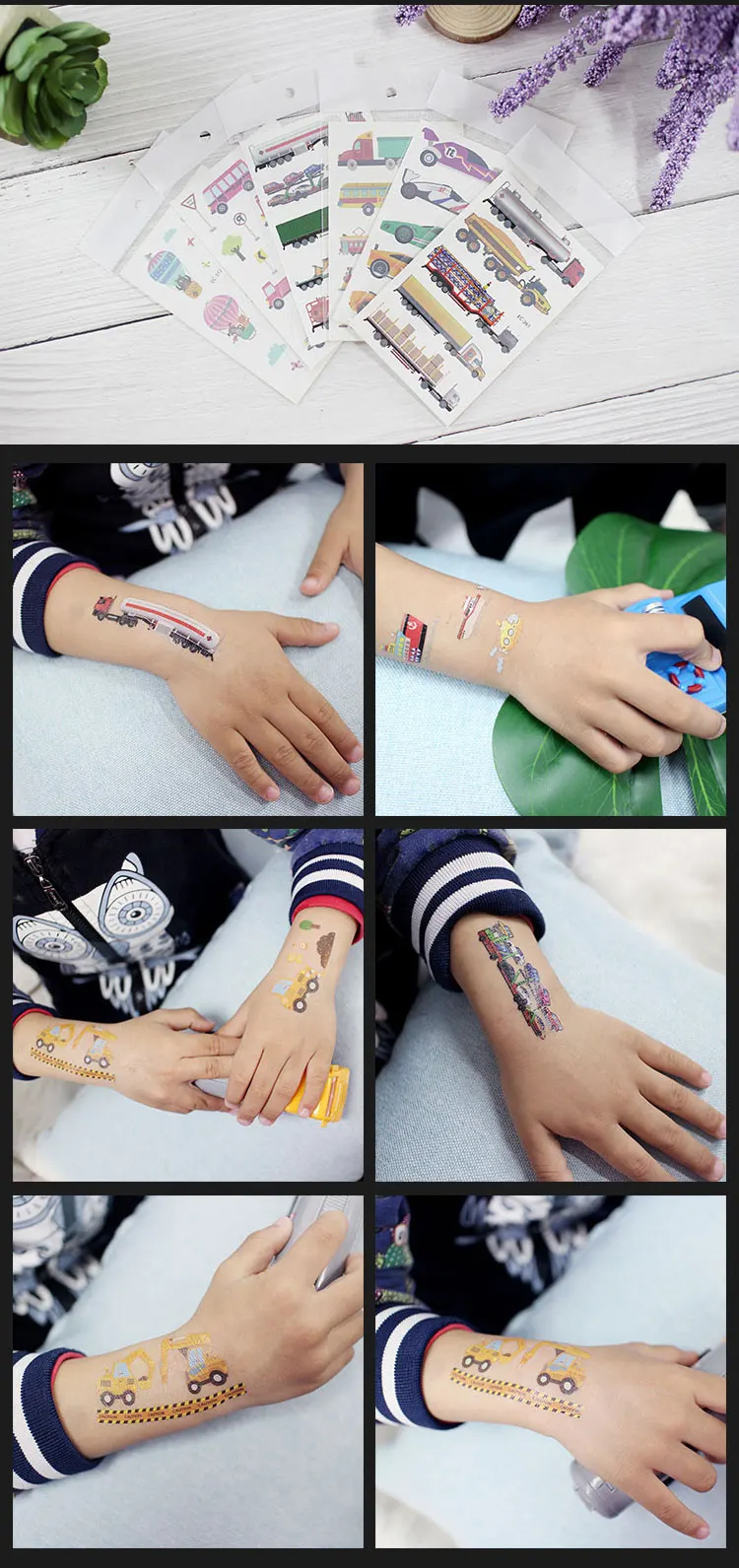 Мультяшные тату Rocooart для детей, милые воздушные шары, экскаватор, поддельные тату, Детская тату, боди-арт, водостойкие Временные татуировки, наклейки