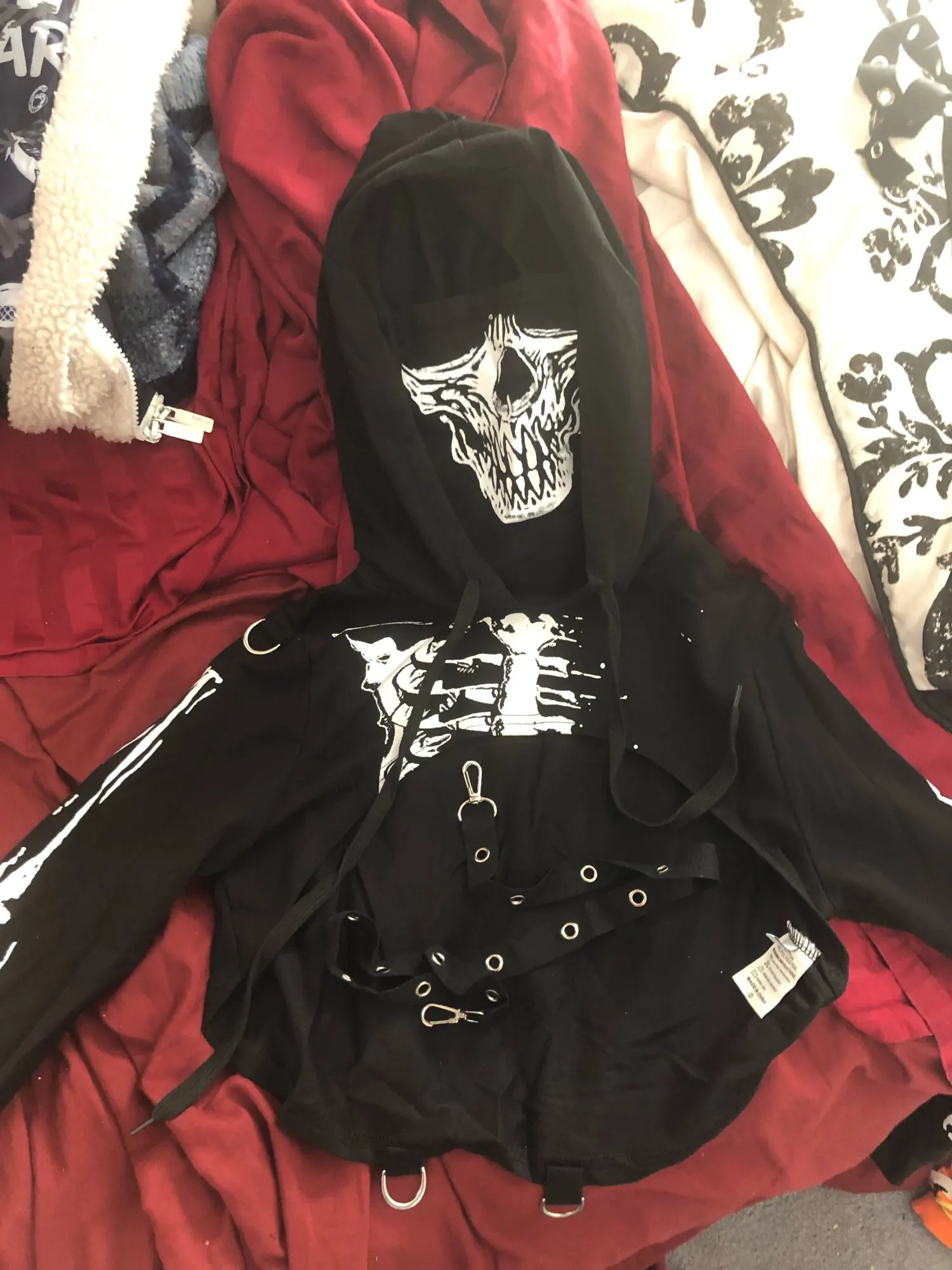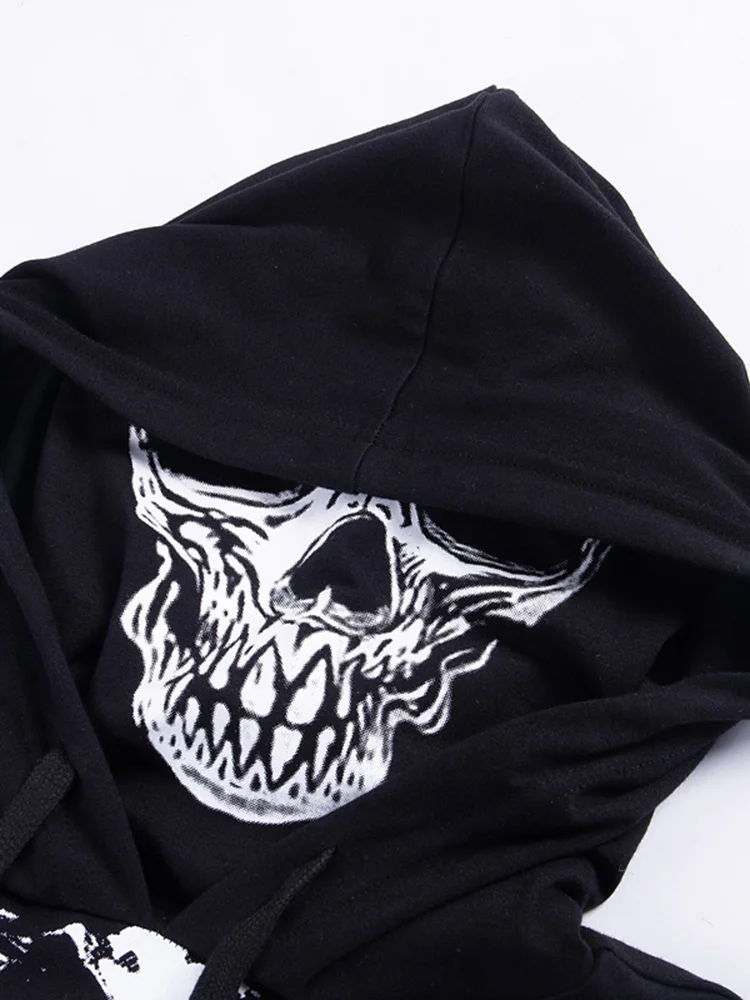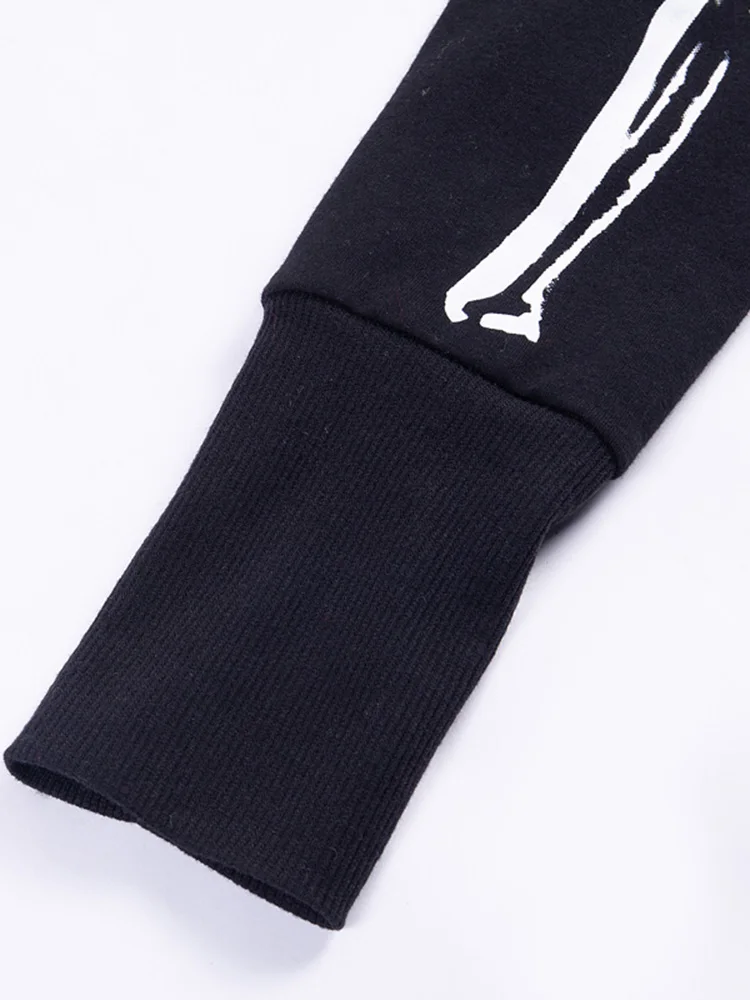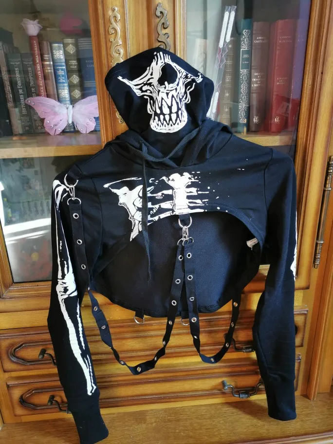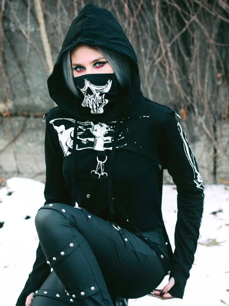 Женский топ с капюшоном InstaHot, черный укороченный топ с принтом скелета, с длинным рукавом, в готическом стиле, на Хэллоуин, 2019
