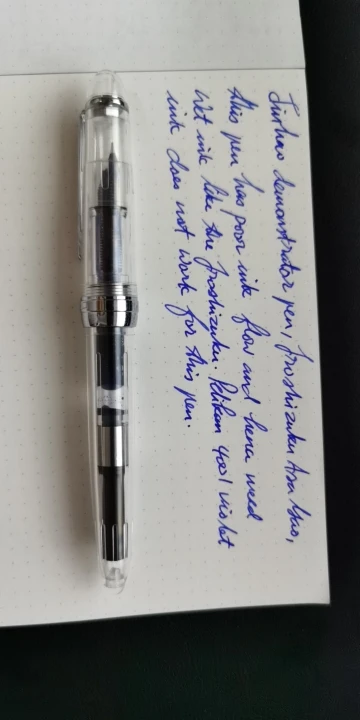 Эта ручка должна использовать влажные чернила, такие как Pilot Iroshizuku Asa Gao, я попробовал фиолетовые чернила Pelikan 4001, ручка не может писать из-за плохого потока чернил, пока эта ручка записывает, я хорош, потому что эта ручка Дешевая и красивая, ручка выполняет свою работу. Я рекомендую эту ручку людям, которые хотят попробовать авторучку в первый раз и не хотят тратить слишком много денег.