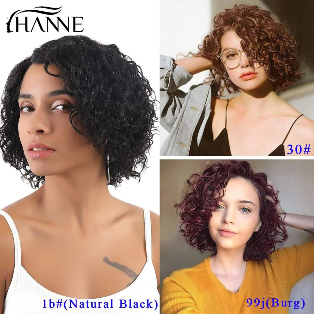 Женский короткий кудрявый парик в виде Боба 1b #30 #99j, цветные бразильские человеческие волосы L-образной формы, парики из человеческих волос, волнистый парик без повреждений для черныхбелых женщин