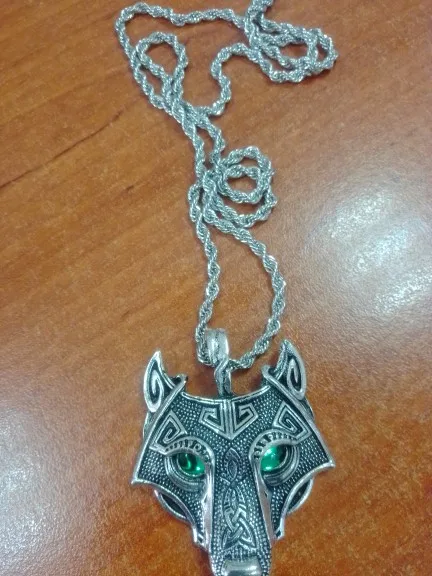 Винтажное ожерелье в стиле панк с подвеской в виде головы волка и зелеными кристаллами, оригинальные украшения в виде животных, голова Волка для мужчин, подарок