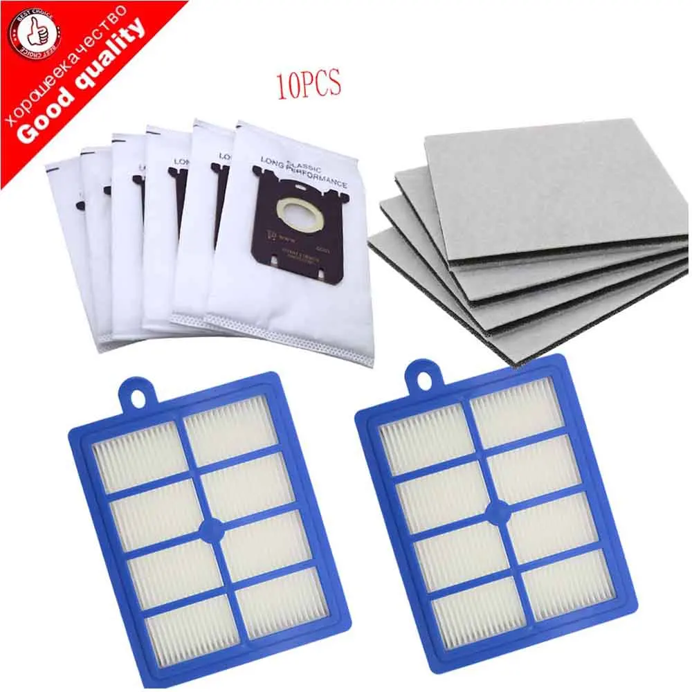 Мешки для пыли для пылесоса, для s-мешков и 2 фильтра H12 и 4 хлопковых фильтра для двигателя, подходящие для пылесоса Philips Electrolux, 10 шт.