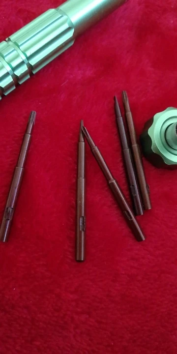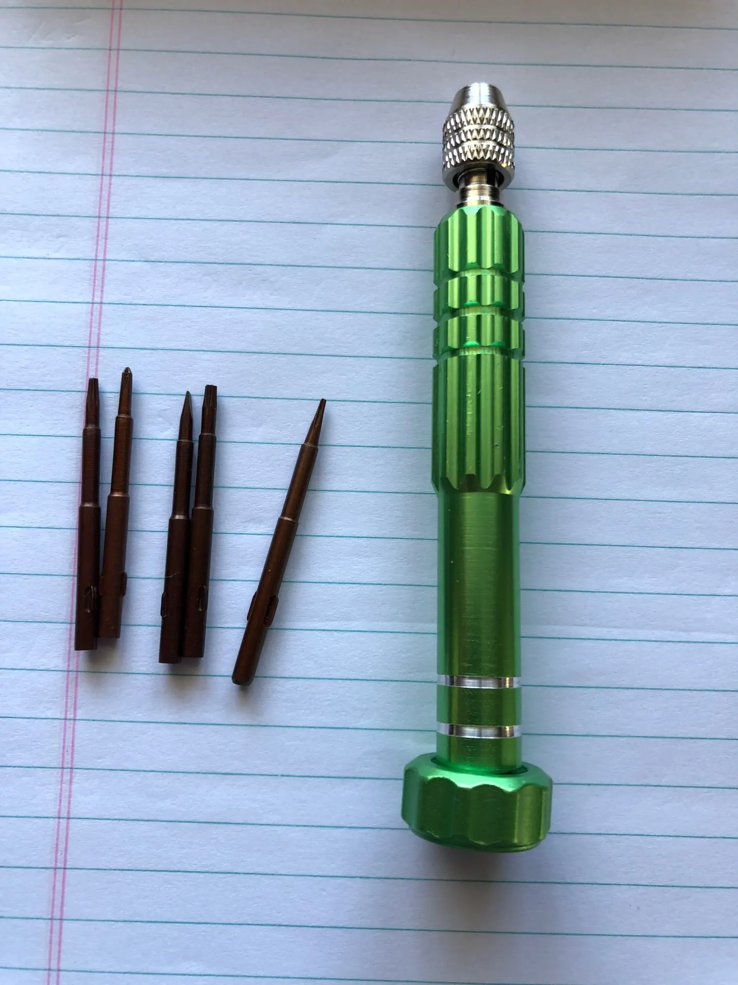 Насадки отвертки выглядят точно обработанными, не знаю, будут ли они долговечными. Ручка будет приятнее, если она будет более цилиндрической с не таким большим количеством экструдированных функций. Он полый и сохраняет насадки внутри, что полезно. К сожалению, рукоятка не является достаточно универсальной, чтобы держать сверла или мини-лезвие для бритвы, поэтому не имеет права быть мульти-инструментом. Вес 23 г.