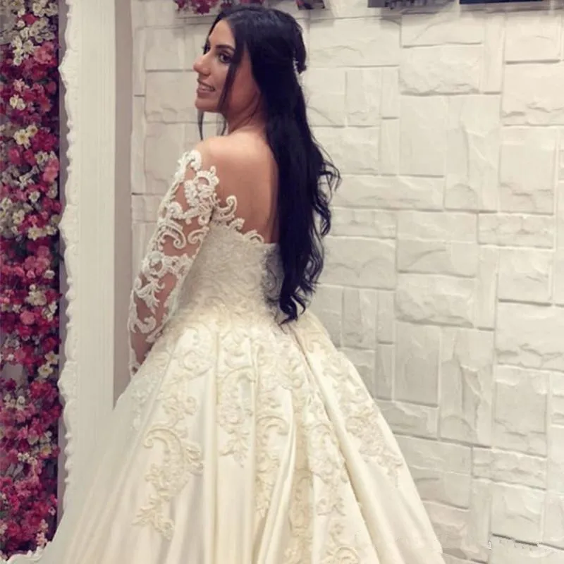 Кружевное бальное платье из Саудовской Аравии, атласные свадебные платья с длинным рукавом, женское платье со шлейфом, свадебное платье
