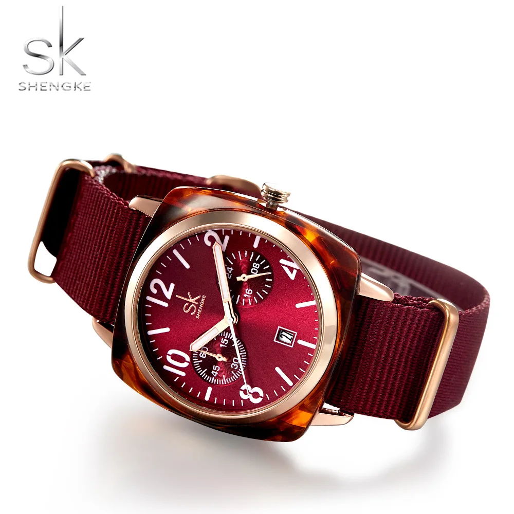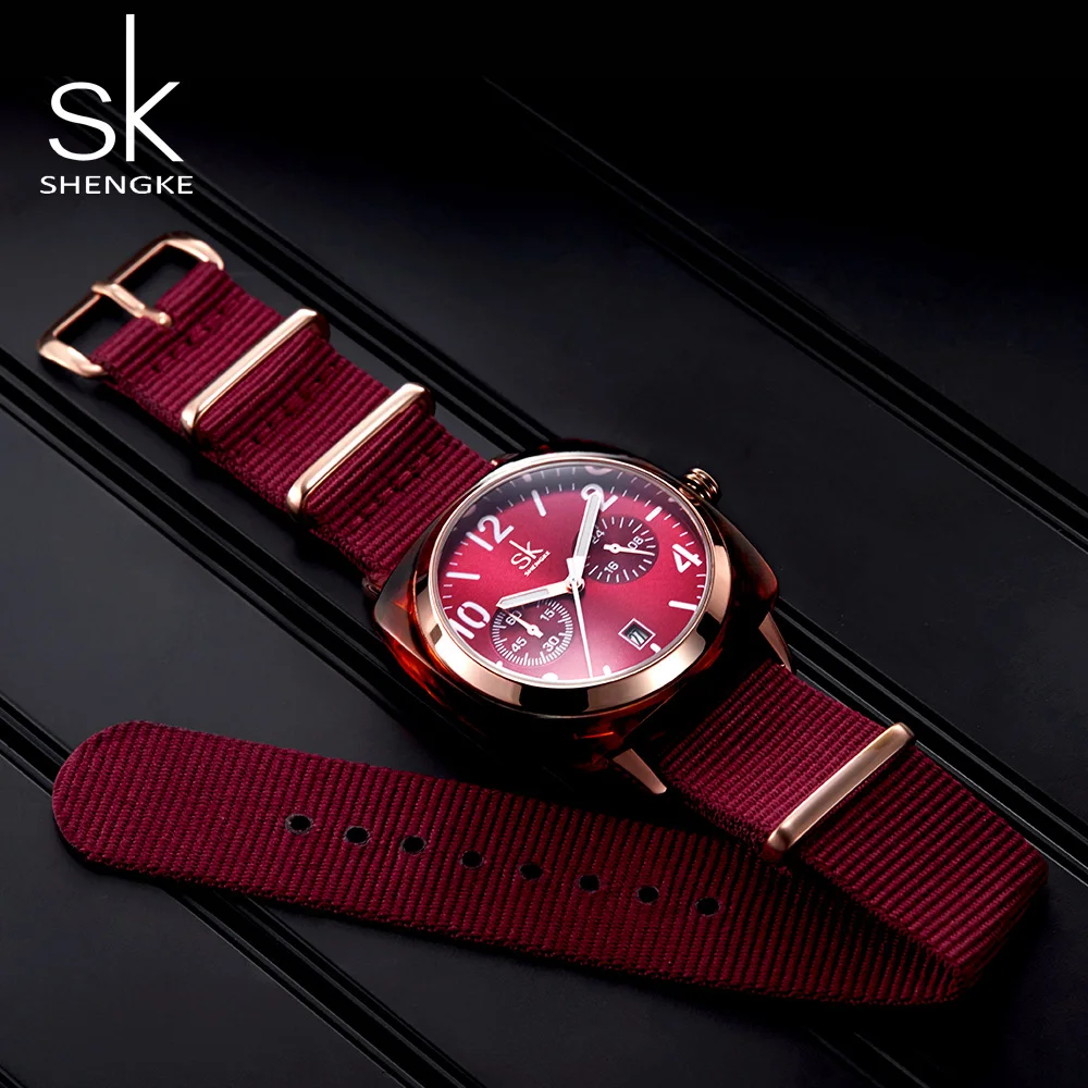 Часы Shengke женские с нейлоновым ремешком, модные роскошные дамские часы из розового золота, SK